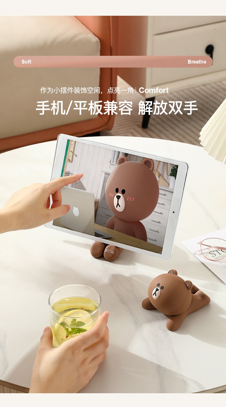 다크 브라운 곰 휴대 전화 스탠드 데스크탑 귀여운 사무실 TV 시리즈 태블릿 지원 스탠드 TV 시계 범용 휴대 전화 스탠드스토어 가기
