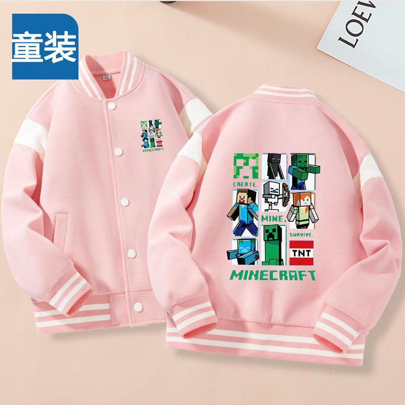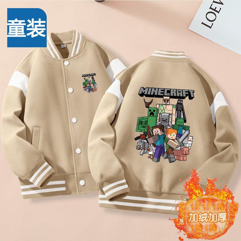 내 세계 마인 크래프트 어린이 가을 및 겨울 야구 세트 재킷 소년의 버튼 카디건 자켓 기모 두껍게