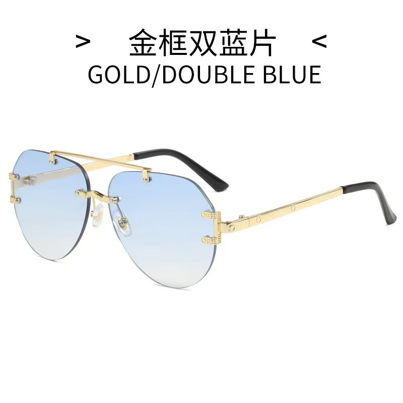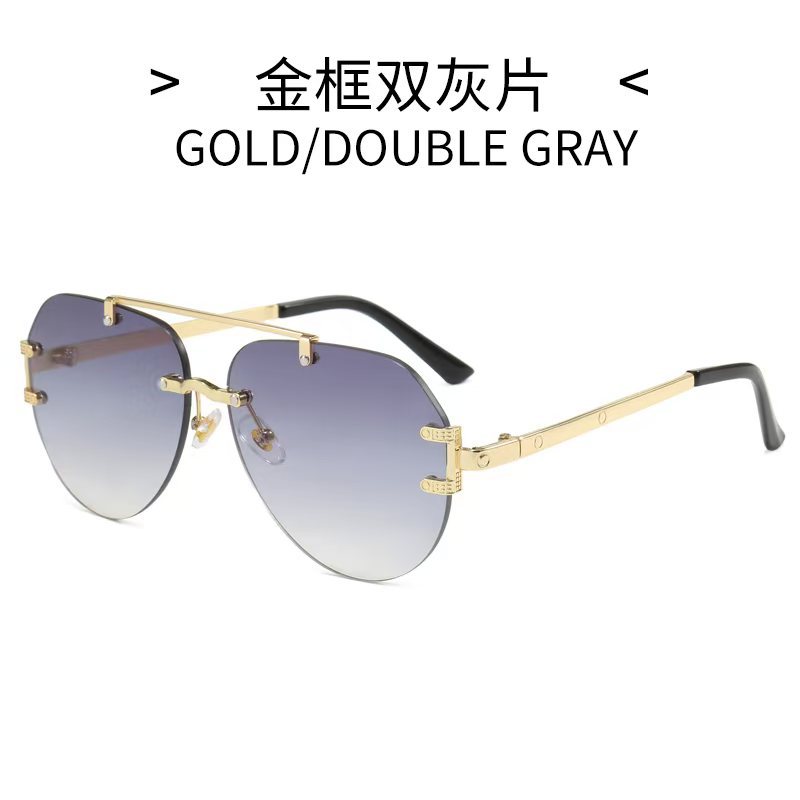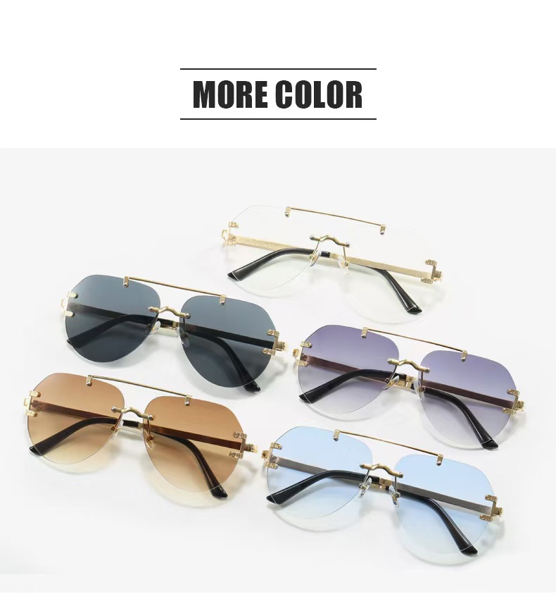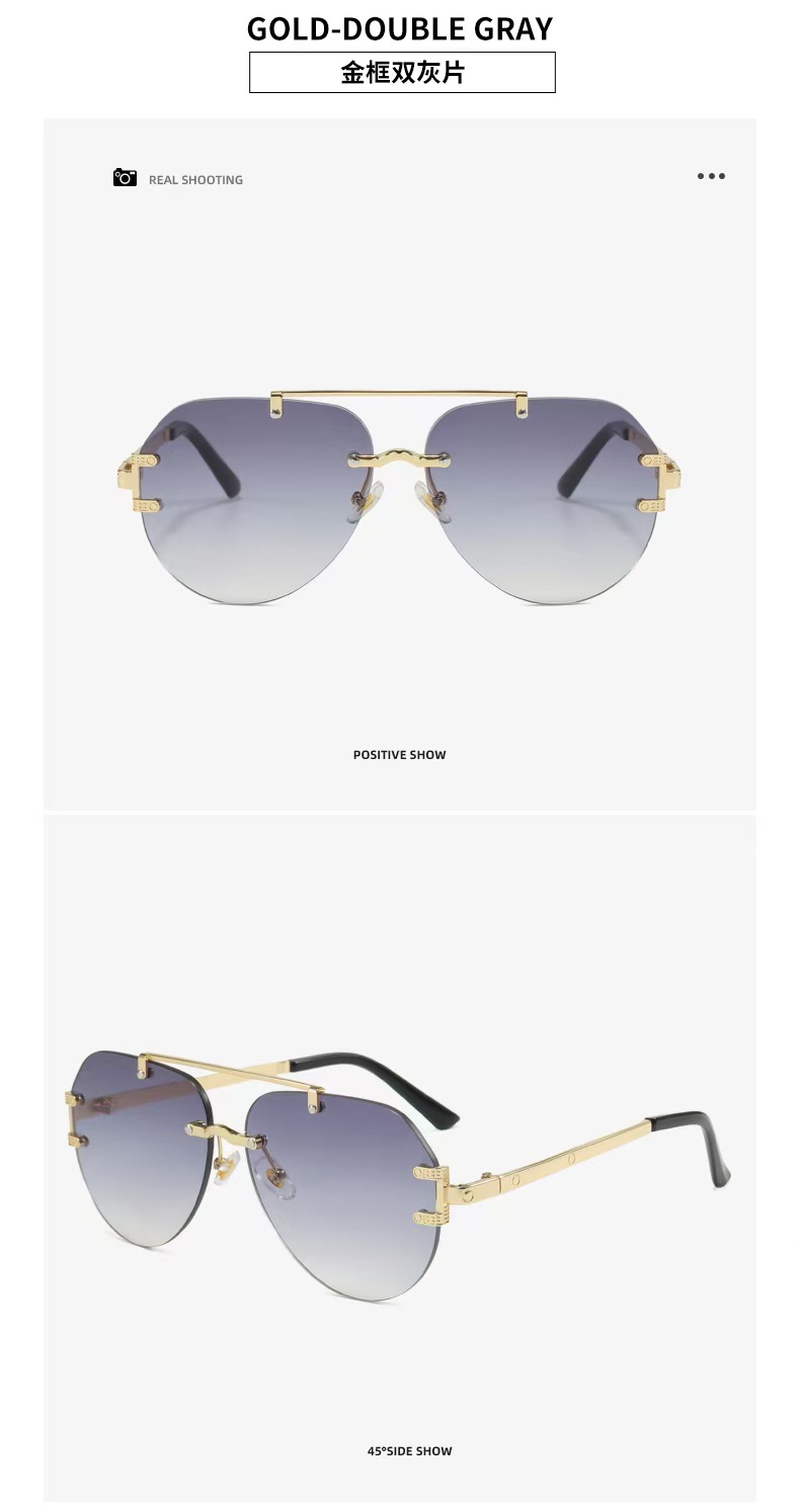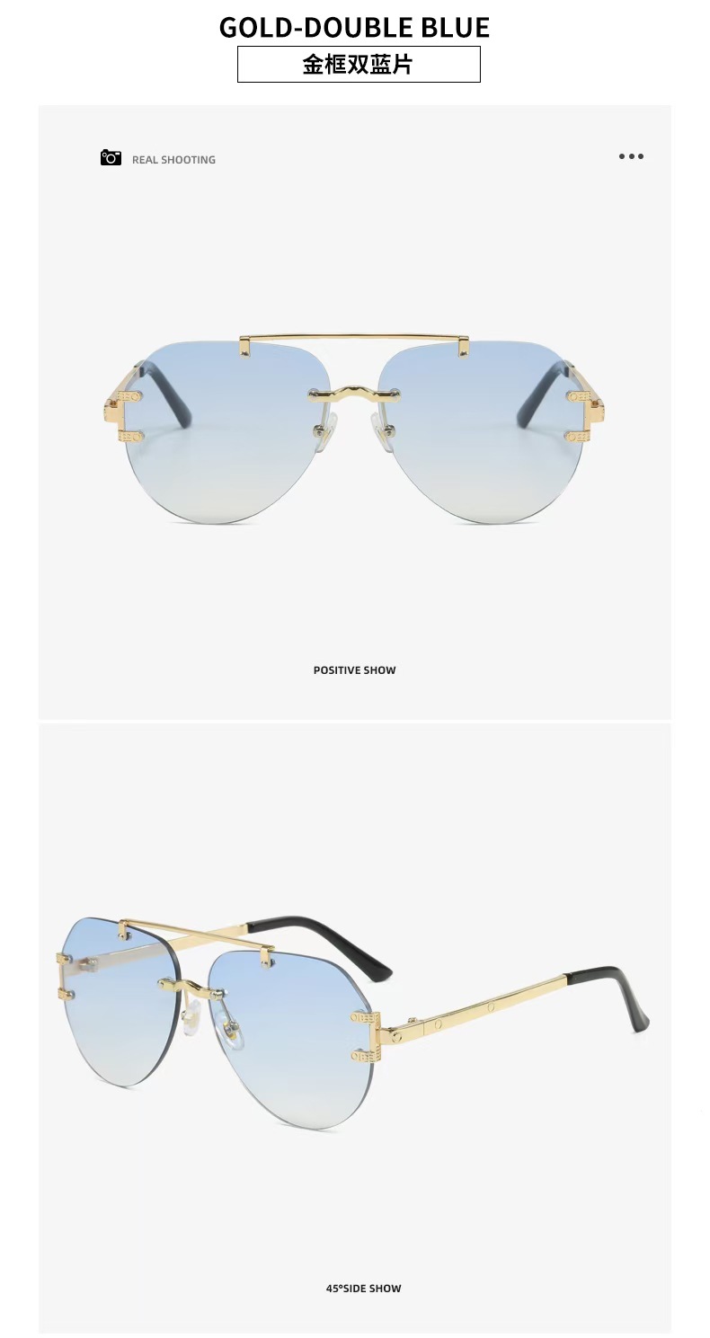 새로운 유럽과 미국의 패션 더블 빔 여성 선글라스 금속 트림 프레임리스 고글 거리 사진 그라디언트 컬러 선글라스스토어 가기