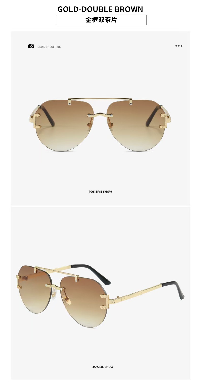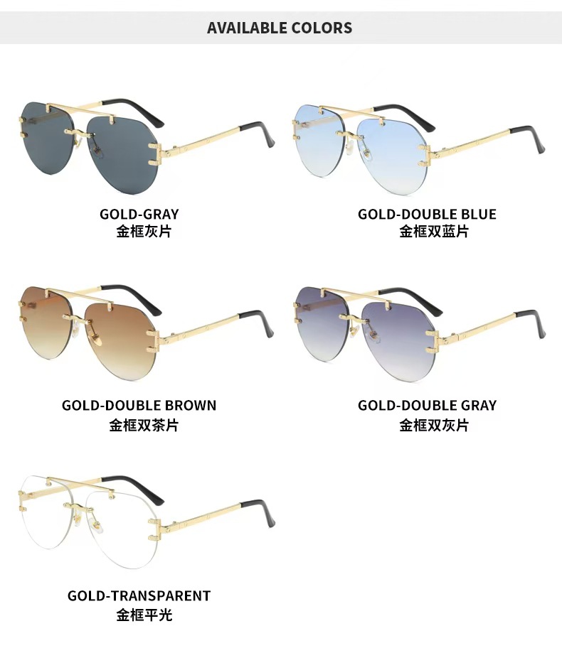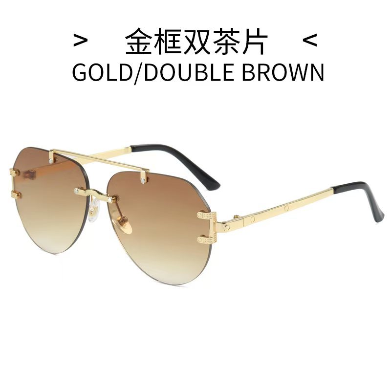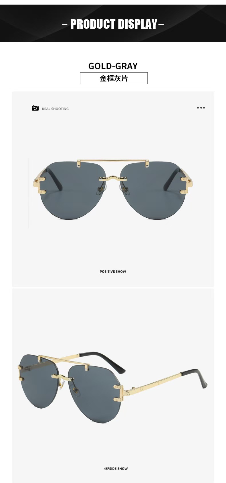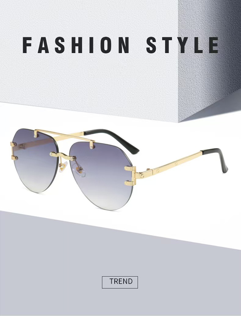 새로운 유럽과 미국의 패션 더블 빔 여성 선글라스 금속 트림 프레임리스 고글 거리 사진 그라디언트 컬러 선글라스스토어 가기