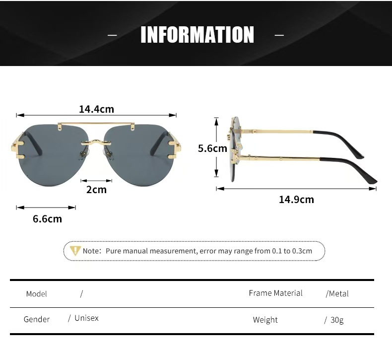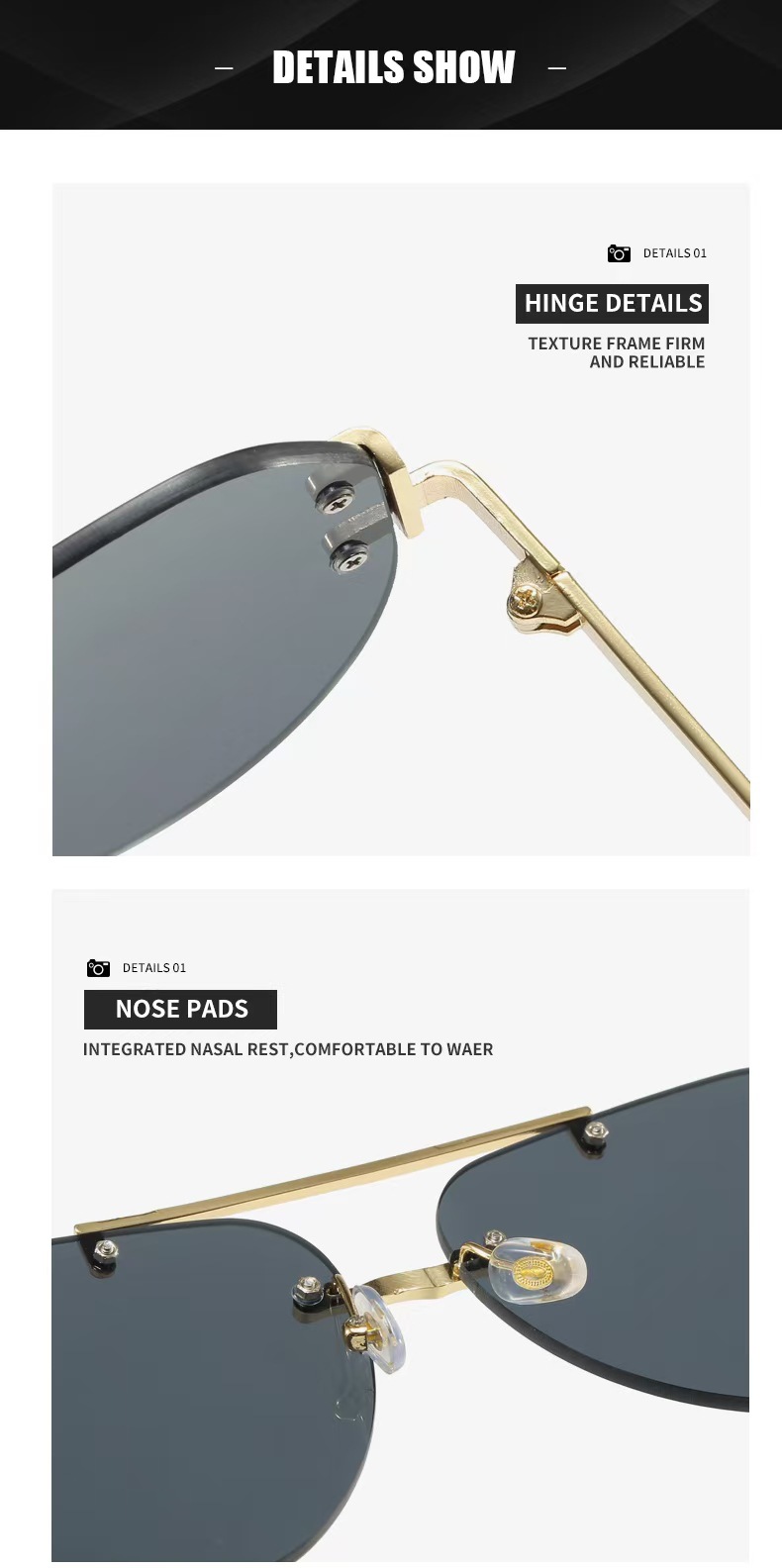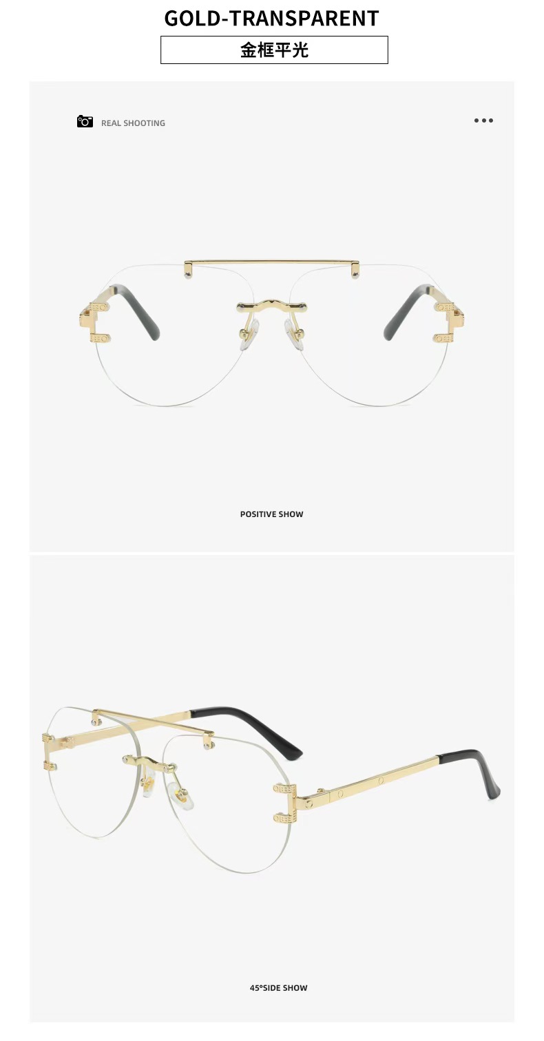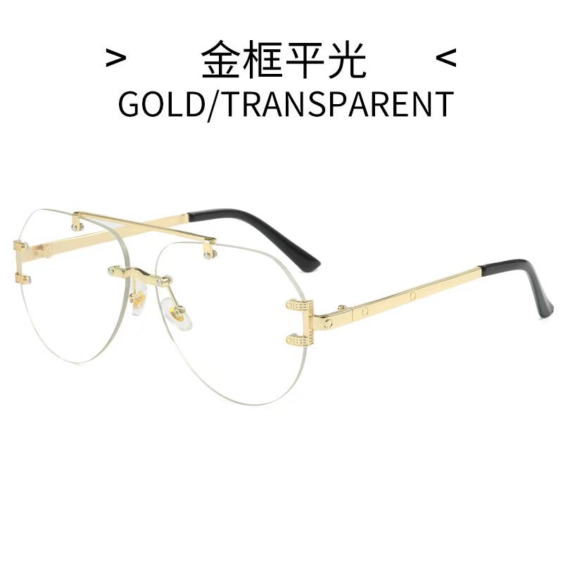 새로운 유럽과 미국의 패션 더블 빔 여성 선글라스 금속 트림 프레임리스 고글 거리 사진 그라디언트 컬러 선글라스스토어 가기