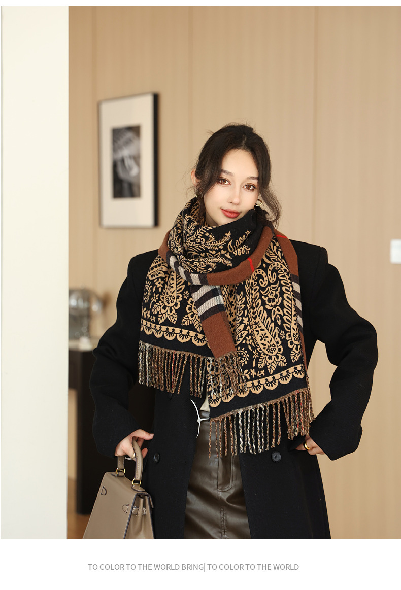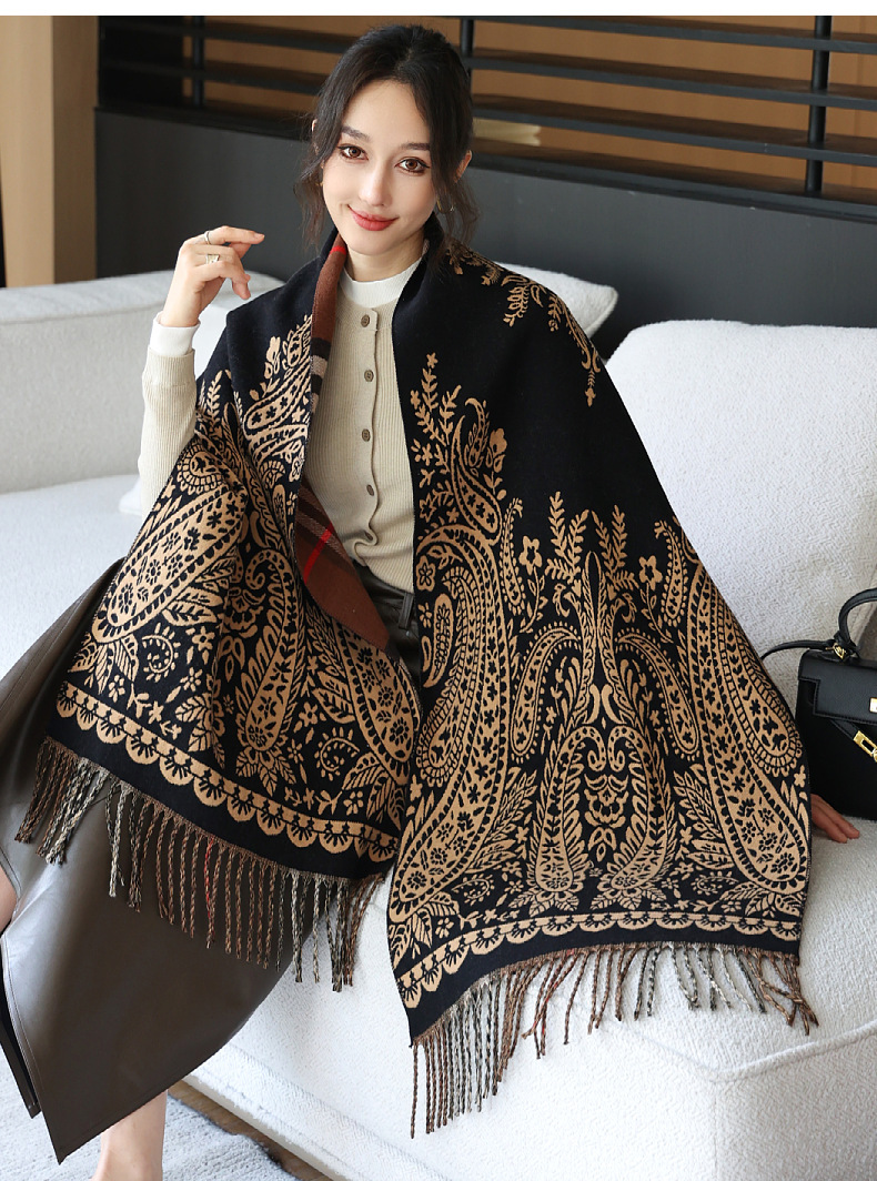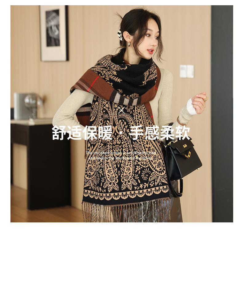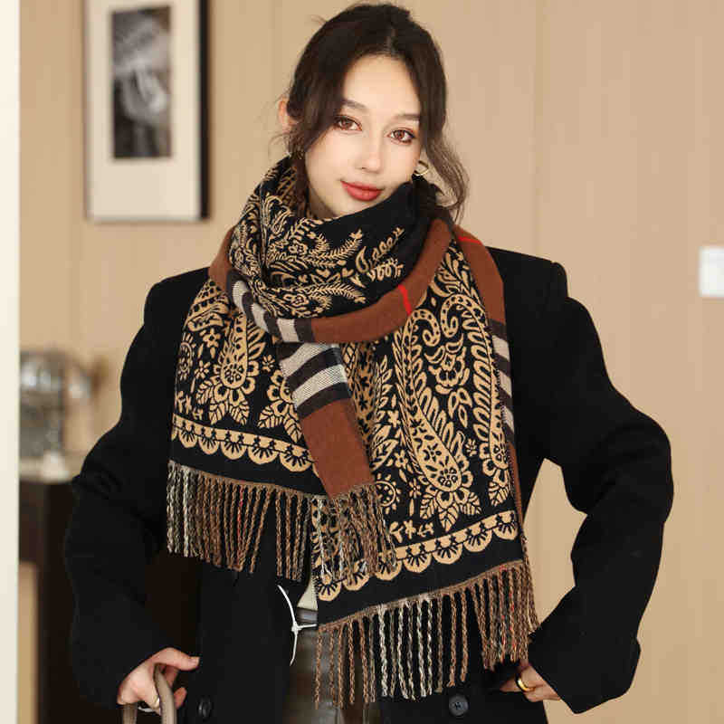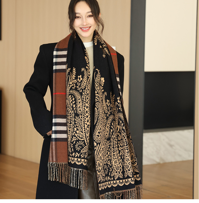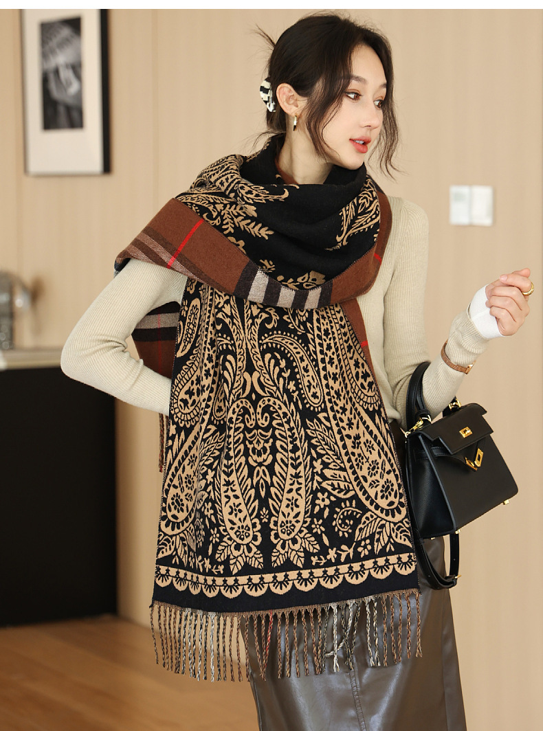 격자 무늬 스카프 여자 겨울 캐슈 한국 스타일 올 매치 양면 긴 목도리 이중 목적 모조 캐시미어 빈티지 따뜻한 스카프