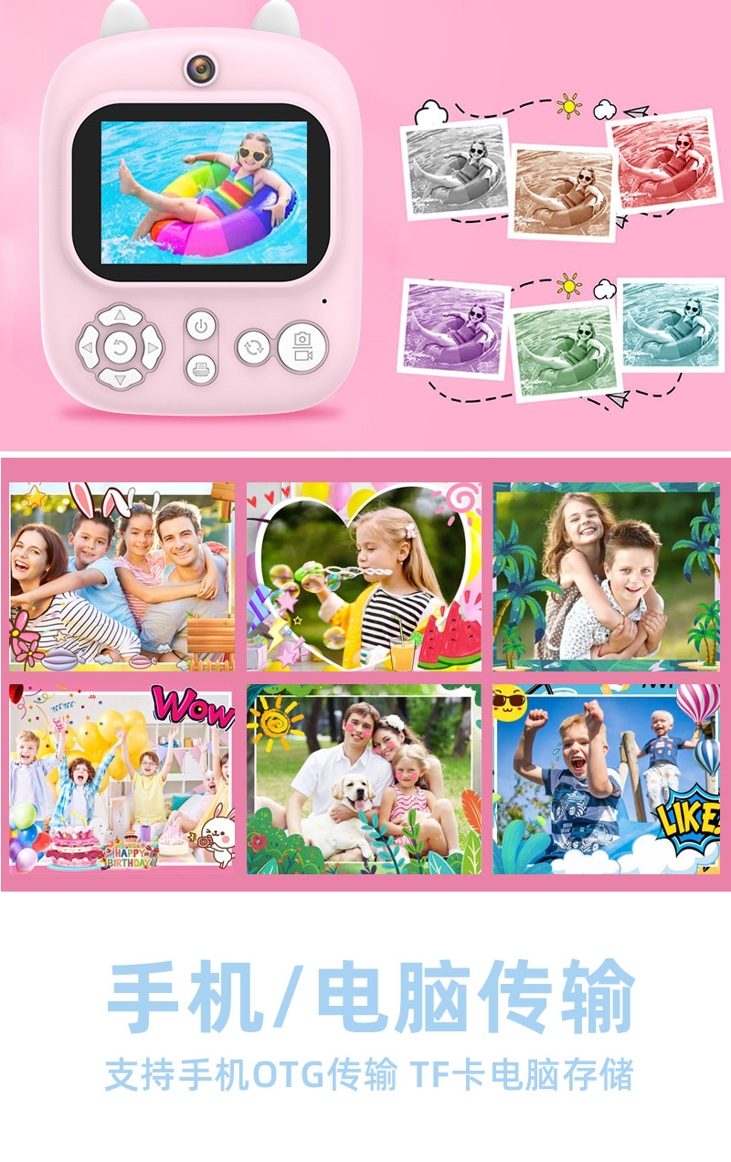 국경 간 공장은 3-12 세 어린이에게 직접 카메라 흑백 인스턴트 잉크 프리 인쇄 카메라를 인쇄합니다.