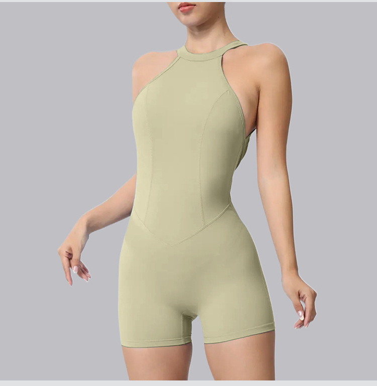 아마존 신상 타이트핏 스포츠 점프수트 러닝 피트니스 점프수트 백리스 수영 요가복 공장 도매
