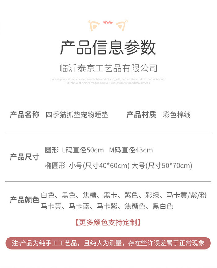 고양이 스크래치 패드 고양이 장난감 내구성 강한 스크래치 방지 고양이 발톱 갈이 매트 고양이 수면 매트 사계절 사용 가능