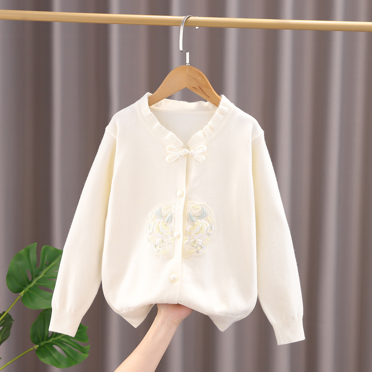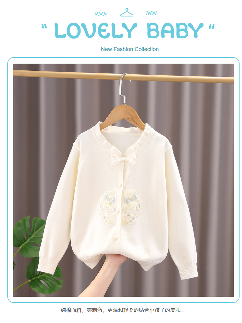 여아용 가디건 2025 가을 신상 한국 스타일 아동용 세련된 니트 스웨터 아기용 얇은 중국풍 소형 코트 트렌디