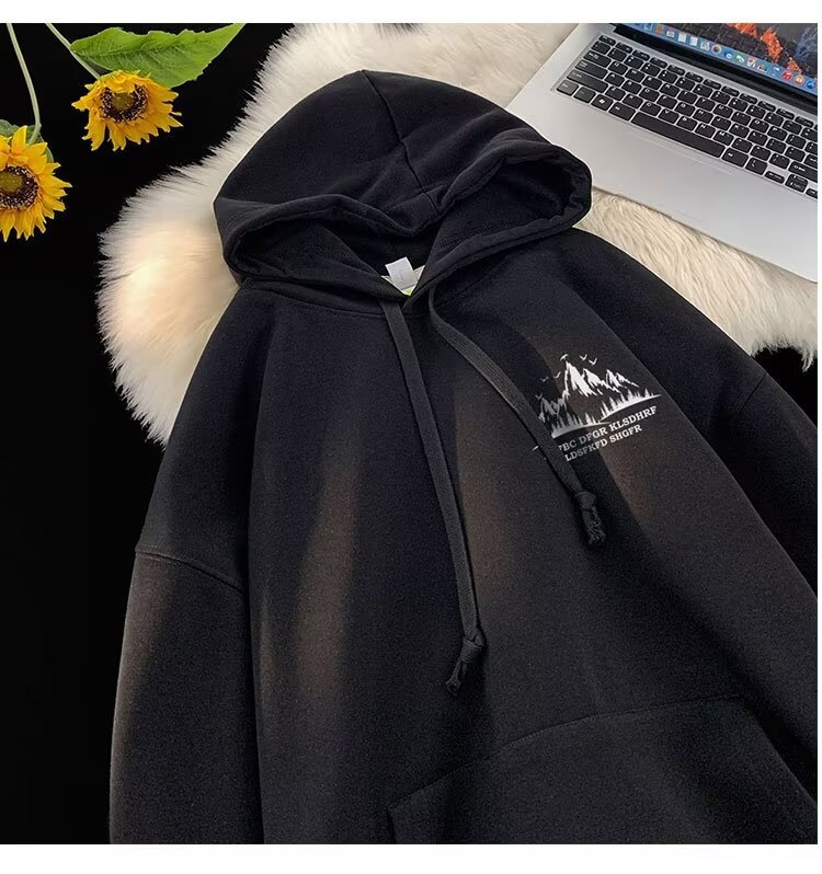 미국 스타일 높은 무게 후드 스웨터 남성 가을 패션 브랜드 루즈 레트로 게으른 후디 하이 스트리트 캐주얼 자켓