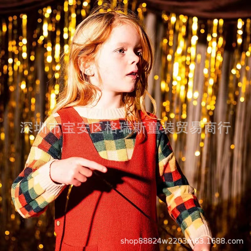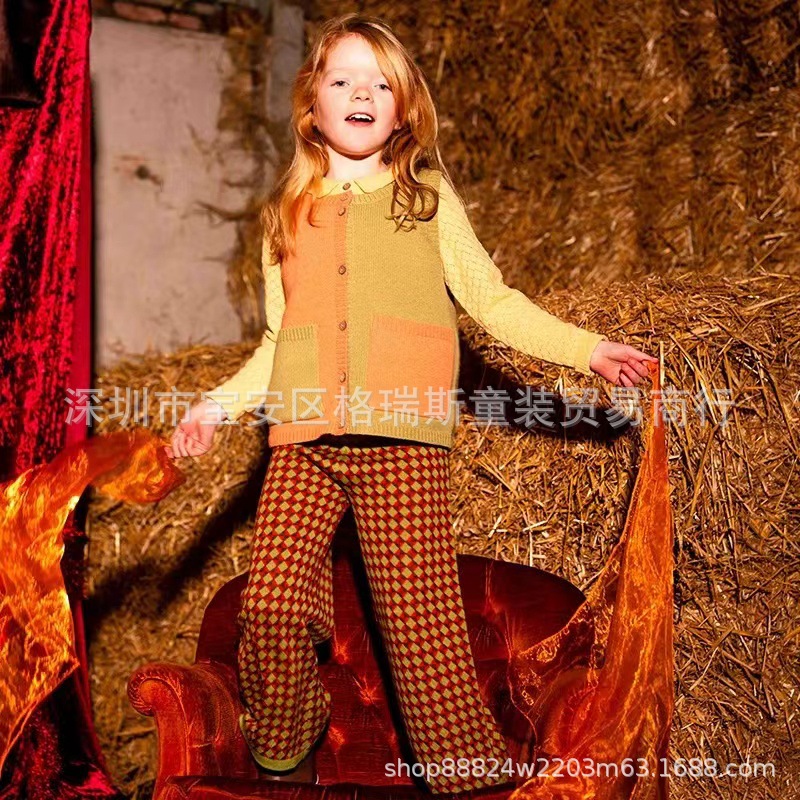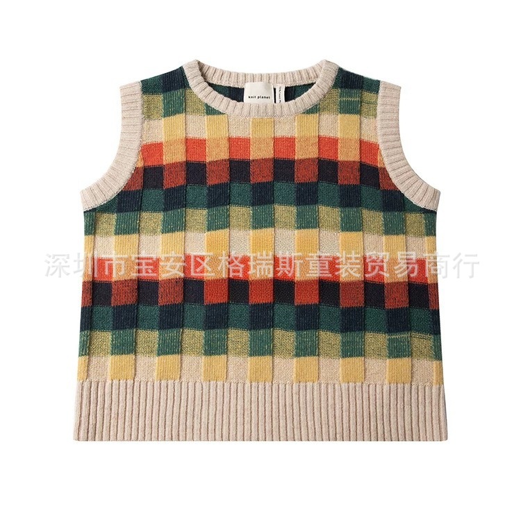 가을 겨울 신상 니트 플래닛 아동복 남녀 아기 배색 카라 체크 스웨터 가디건 조끼스토어 가기