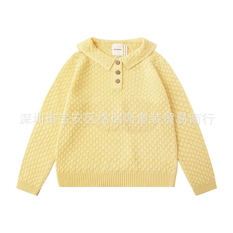 • 스팟 kp 옐로우 할로우 라펠 긴팔 스웨터