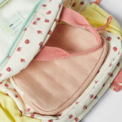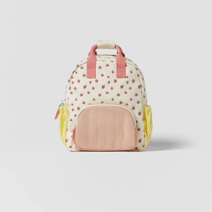 새로운 면 캔버스 도파민 딸기 인쇄 컬러 블록 귀여운 어린이 배낭 Schoolbag