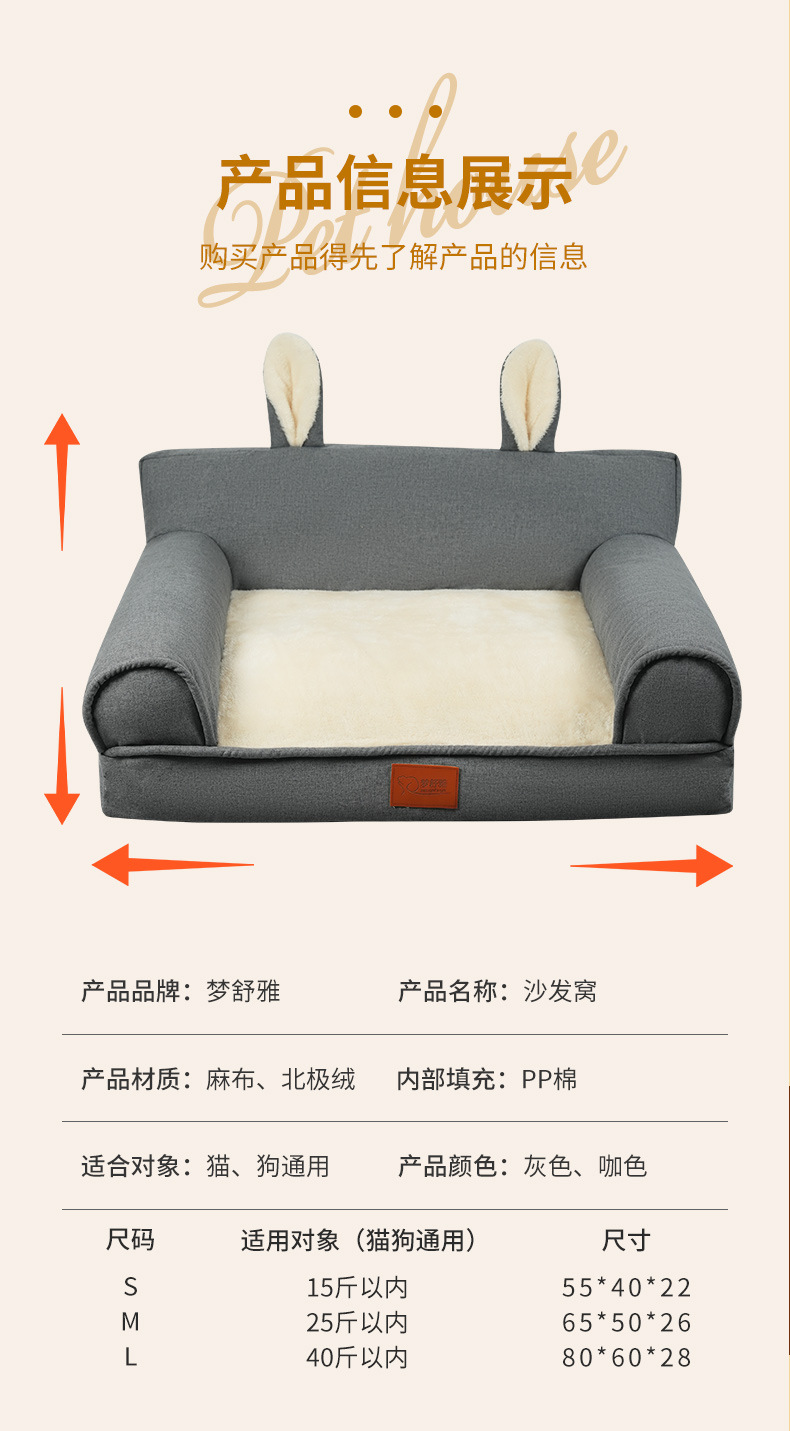 2024 새로운 고양이 사육장 개 사육장 겨울 따뜻한 토끼 아기 오픈 고양이 개 침대 소파 용품 애완 동물 유니버설스토어 가기