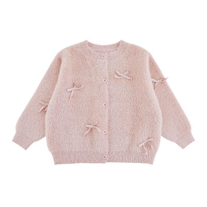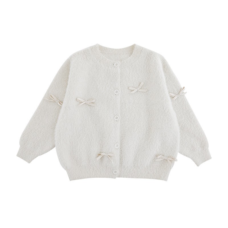 Wulibuyi 소녀 나비 넥타이 니트 자켓 2025 가을 어린이 푹신한 면화 부드러운 스웨터 카디건 유행스토어 가기