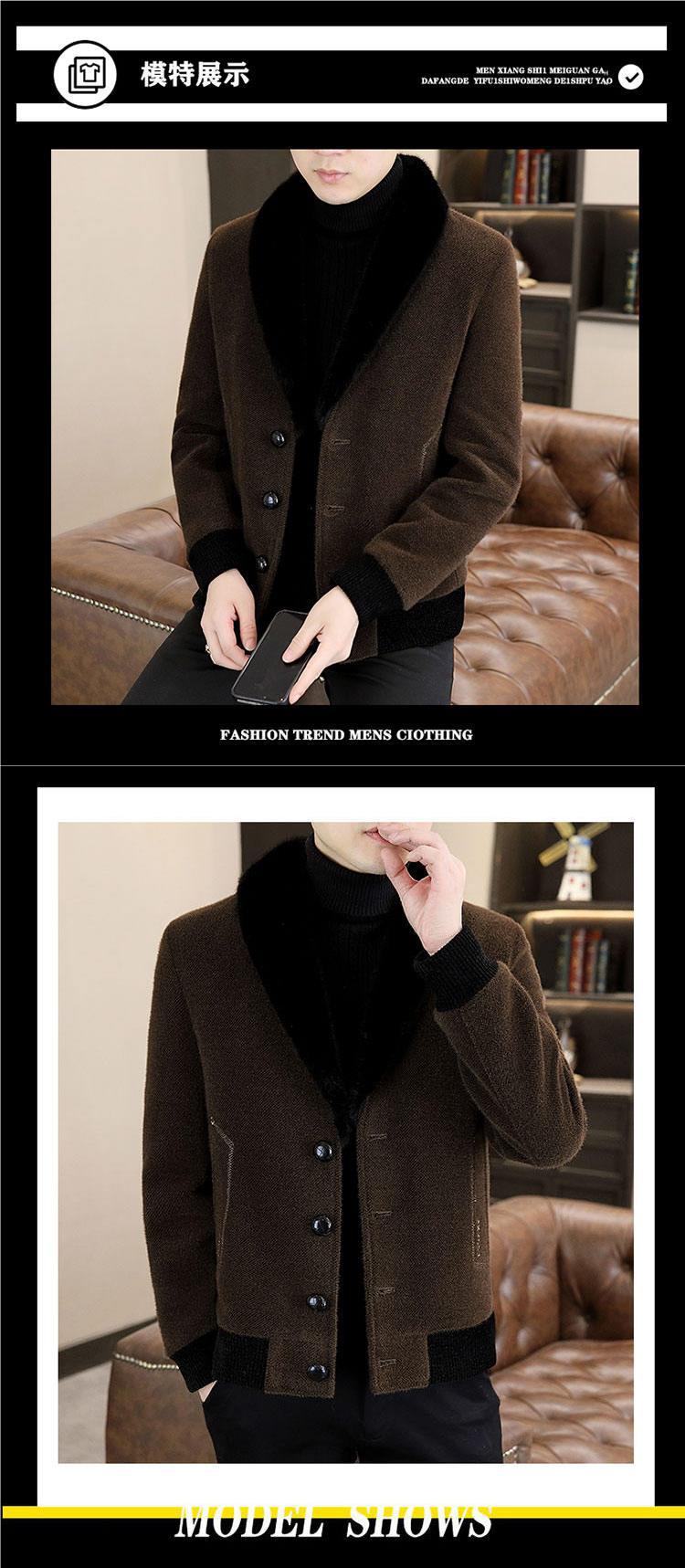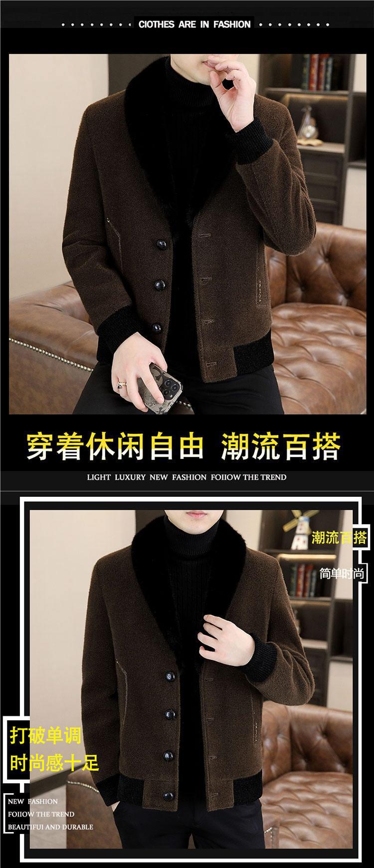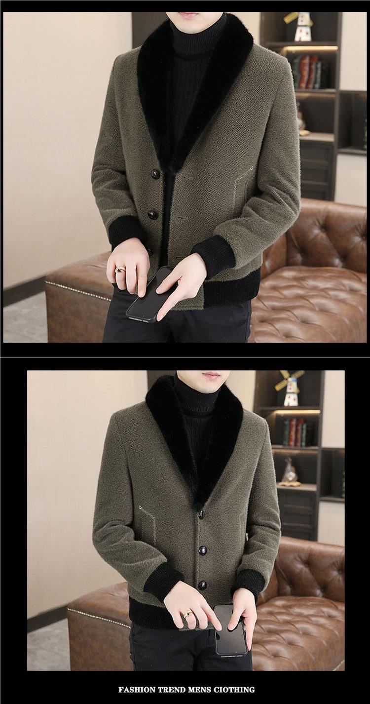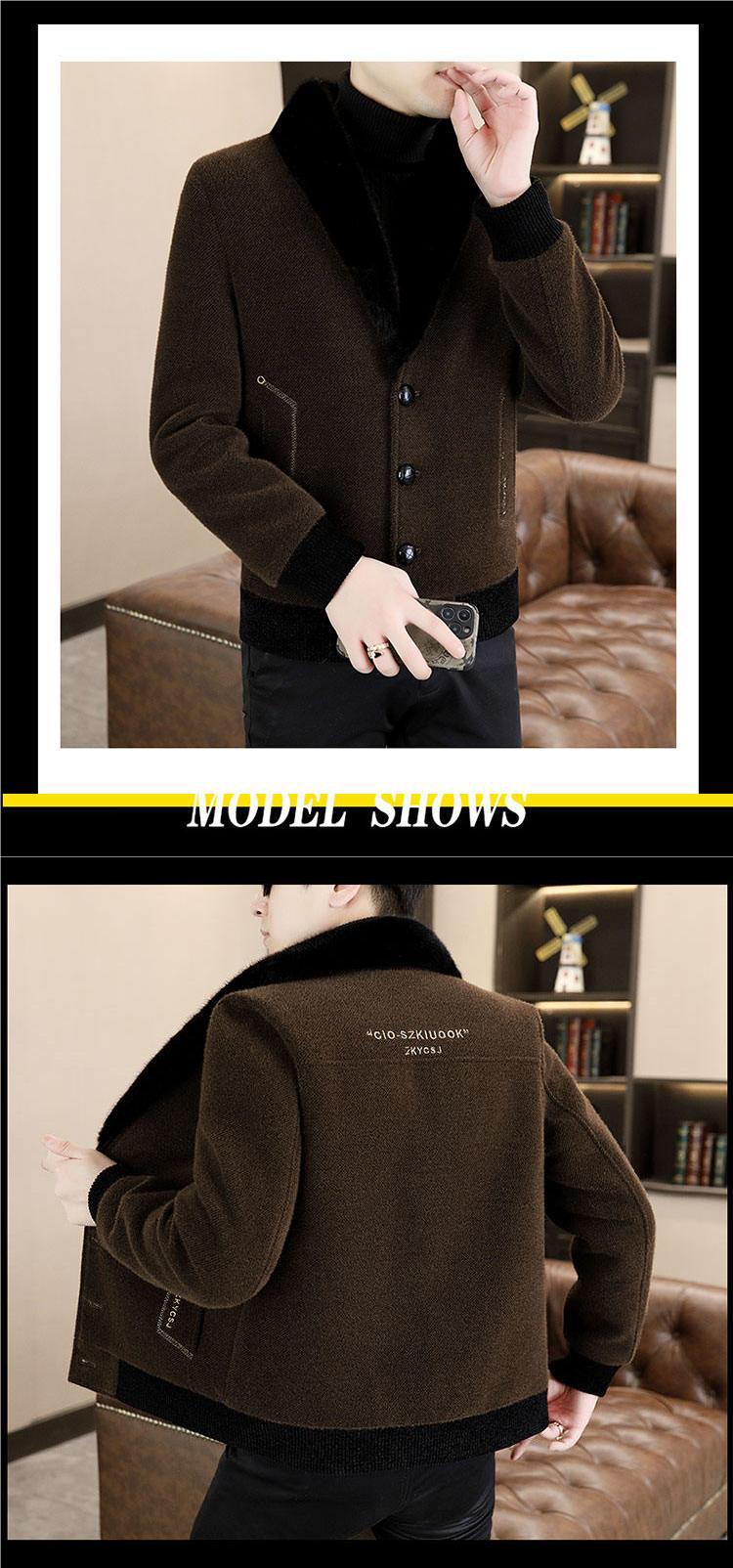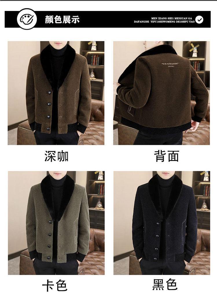모직 코트 남자의 유행 가을 겨울 기모 두꺼운 재킷 코트 청소년 캐주얼 밍크 양털 짧은 세트 트렌치 코트