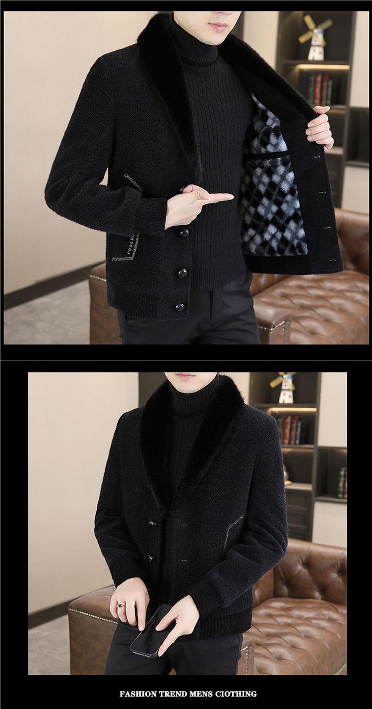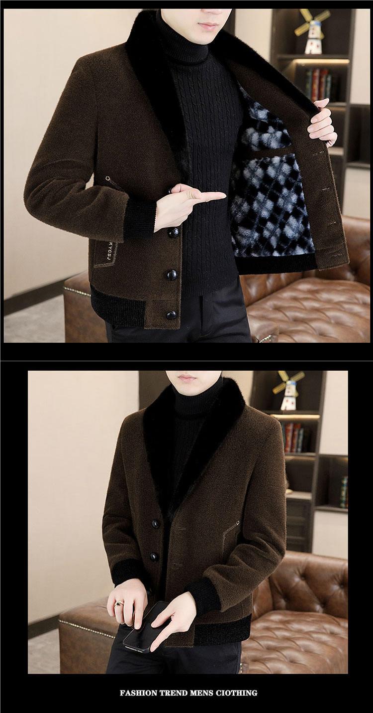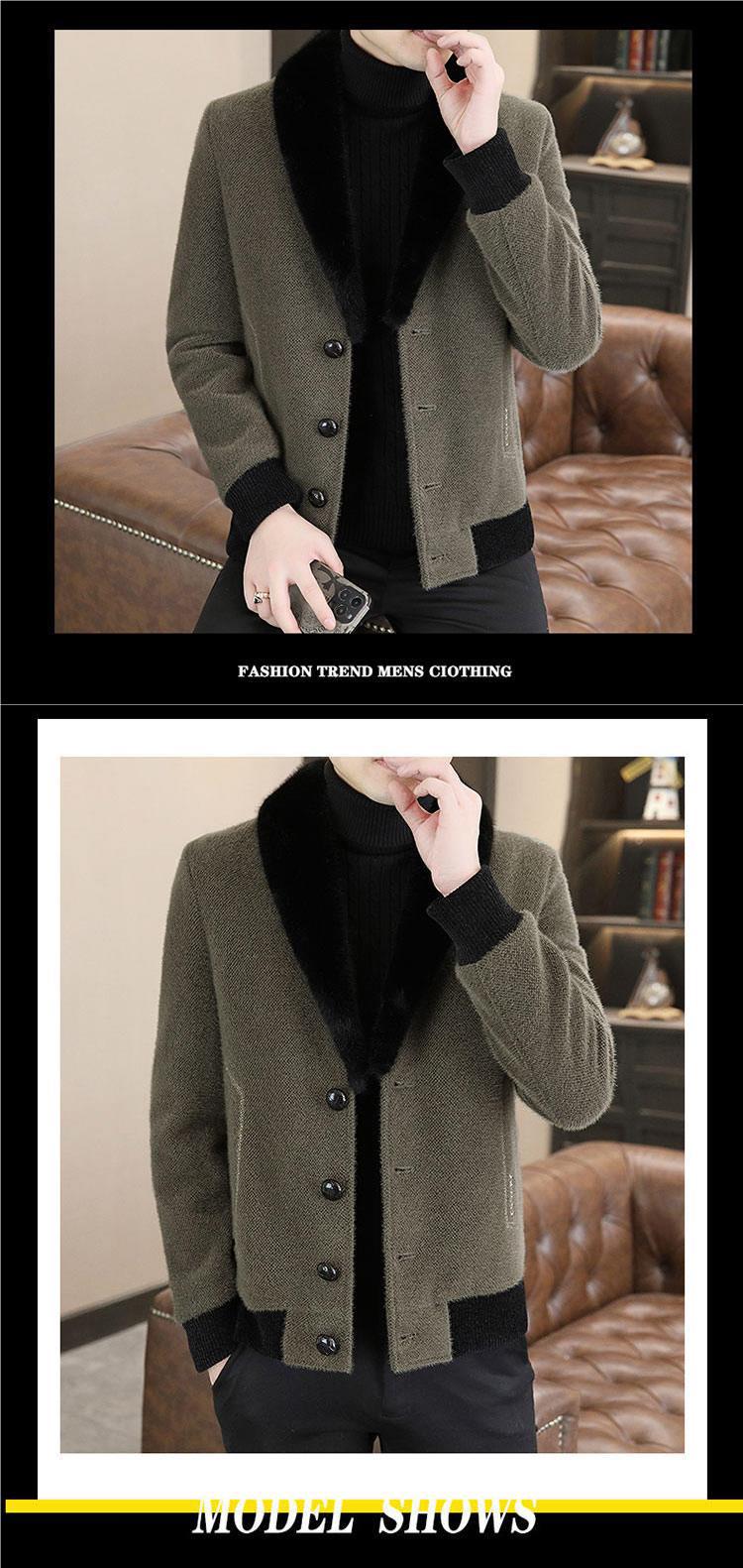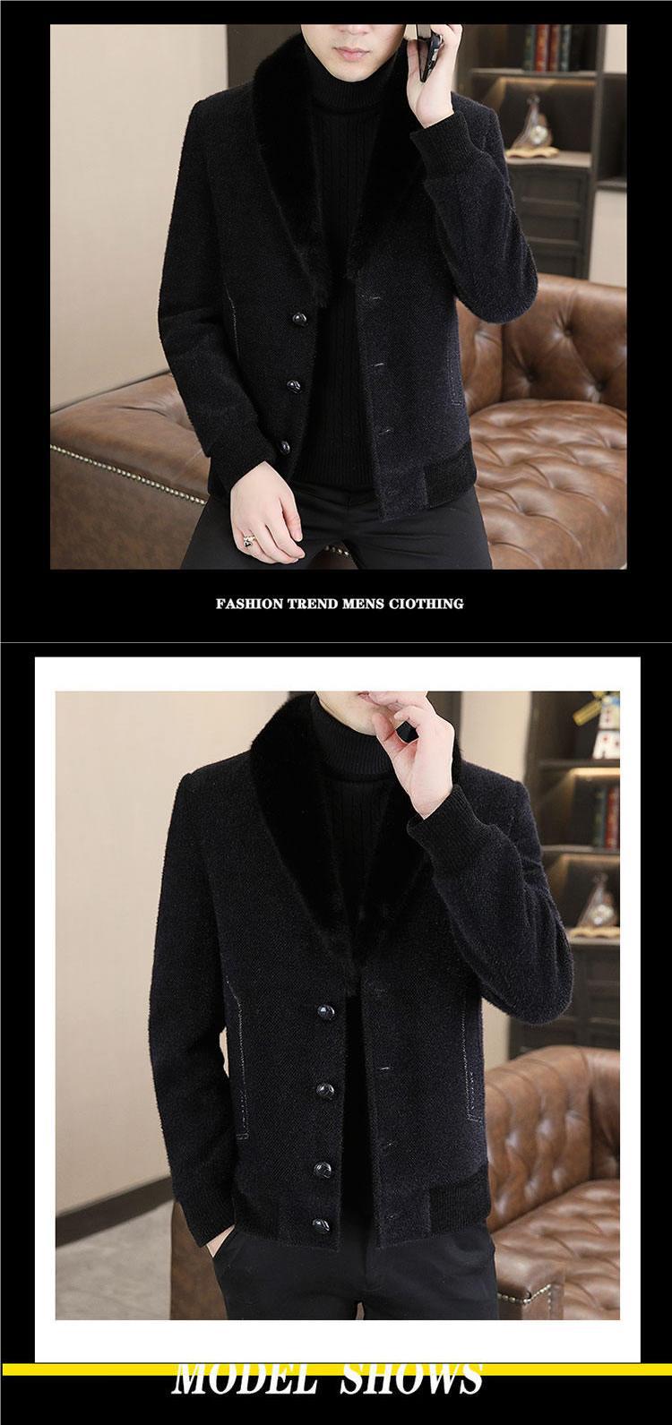 모직 코트 남자의 유행 가을 겨울 기모 두꺼운 재킷 코트 청소년 캐주얼 밍크 양털 짧은 세트 트렌치 코트