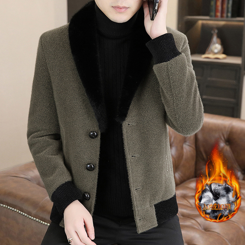 모직 코트 남자의 유행 가을 겨울 기모 두꺼운 재킷 코트 청소년 캐주얼 밍크 양털 짧은 세트 트렌치 코트스토어 가기