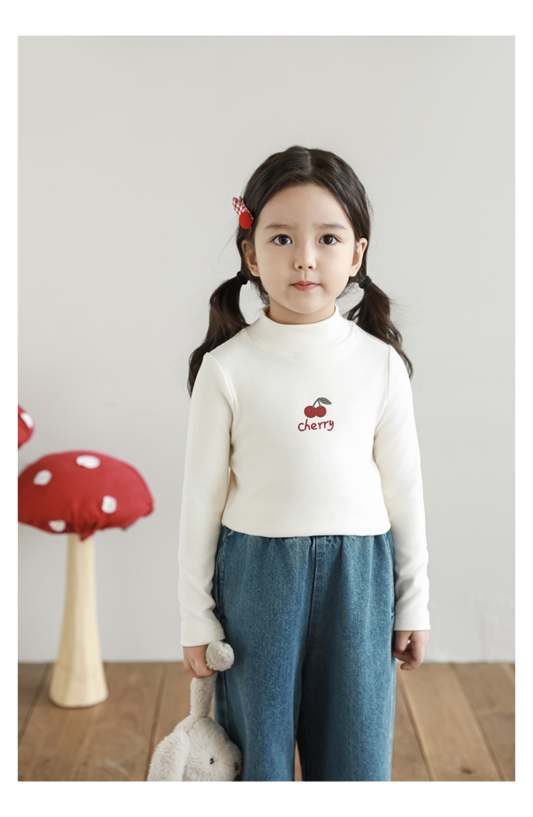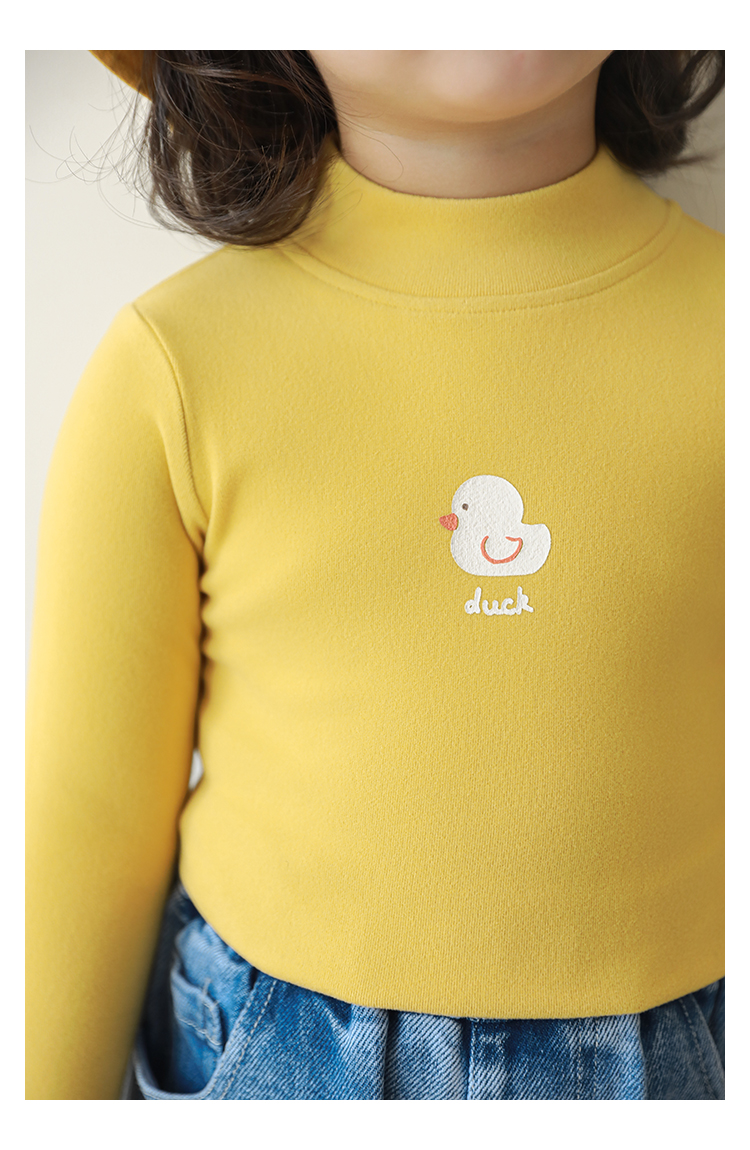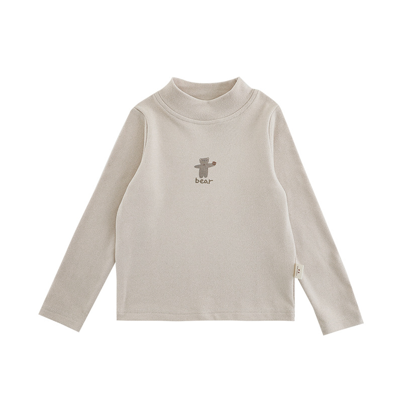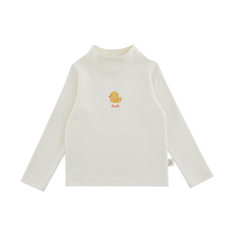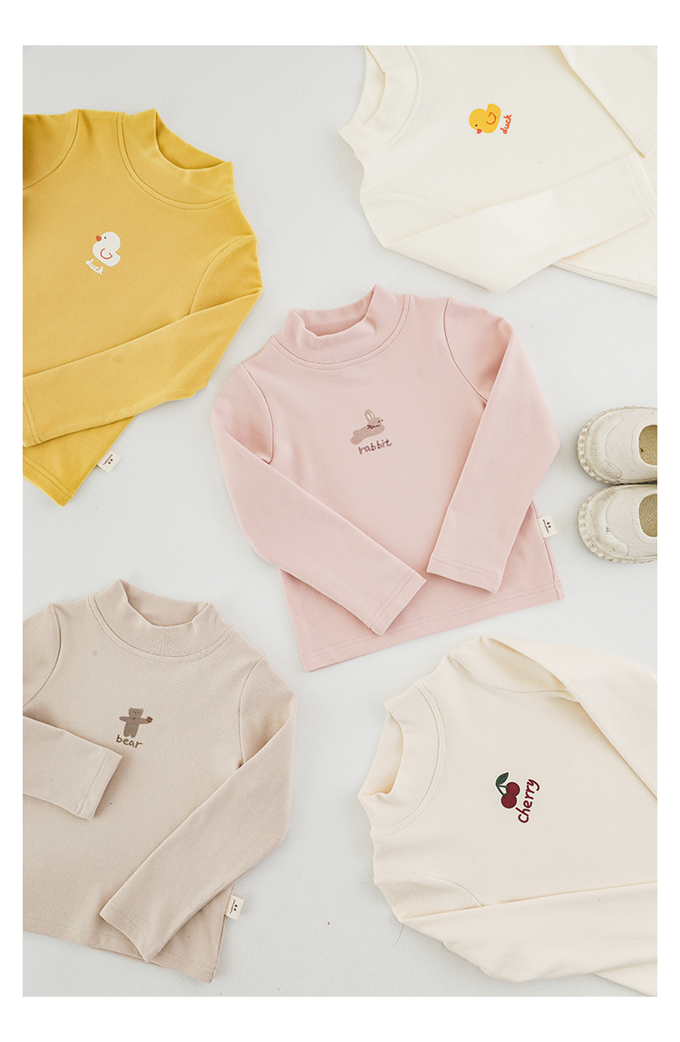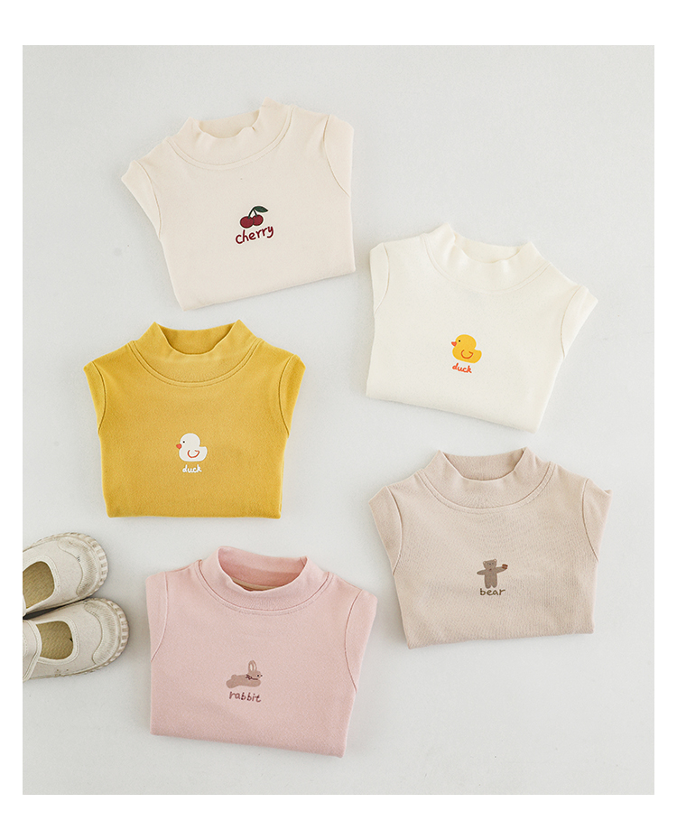 Wuri Boo 소녀의 만화 동물 높은 칼라 기지 셔츠 슬림핏 가을 어린이 귀여운 올 매치 캐주얼 티셔츠