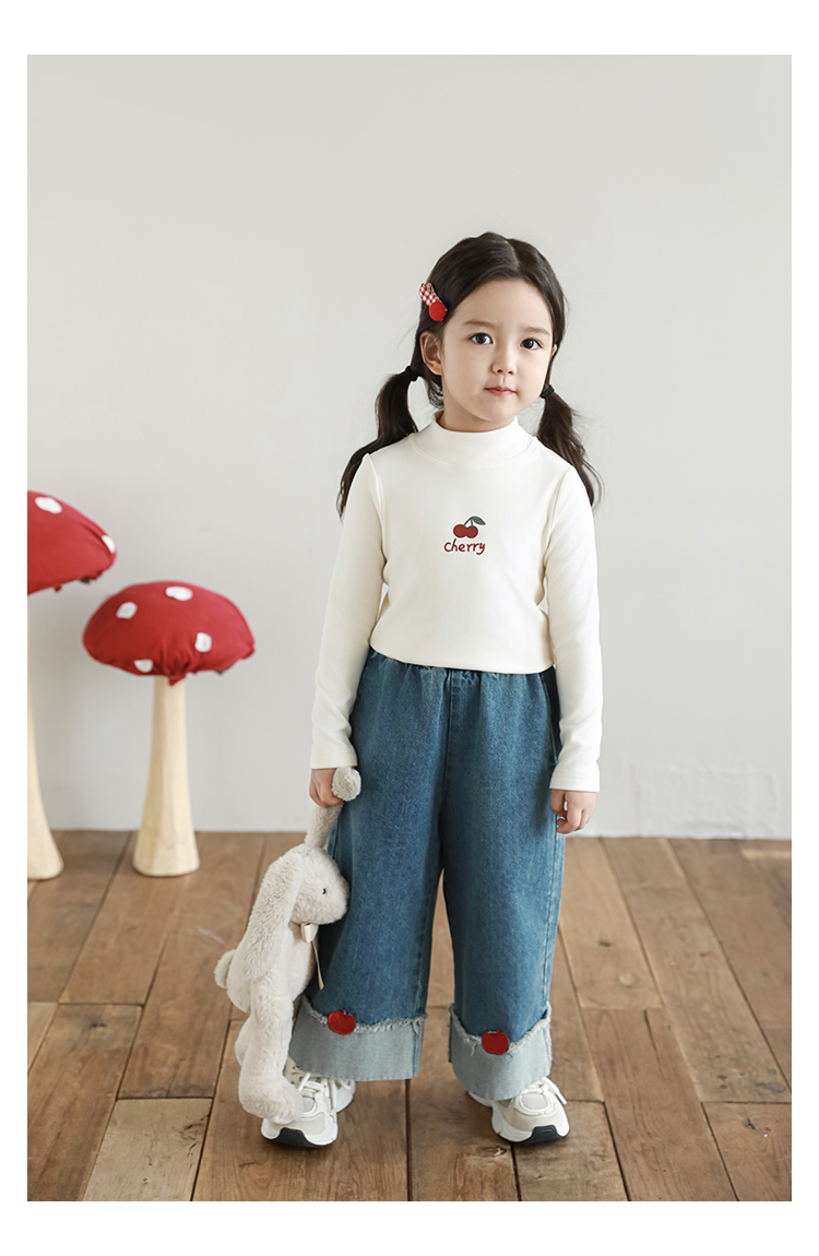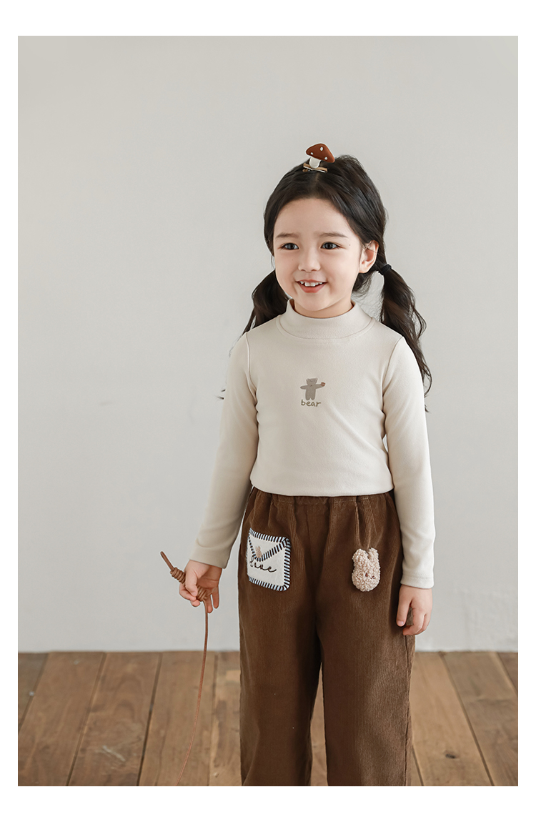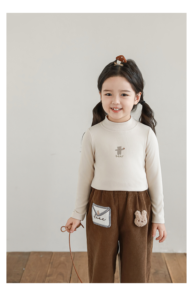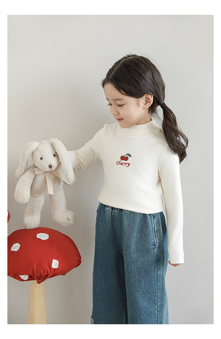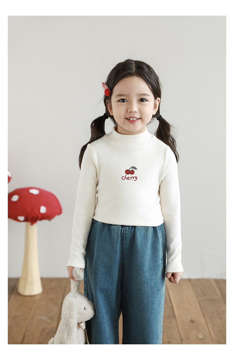 Wuri Boo 소녀의 만화 동물 높은 칼라 기지 셔츠 슬림핏 가을 어린이 귀여운 올 매치 캐주얼 티셔츠