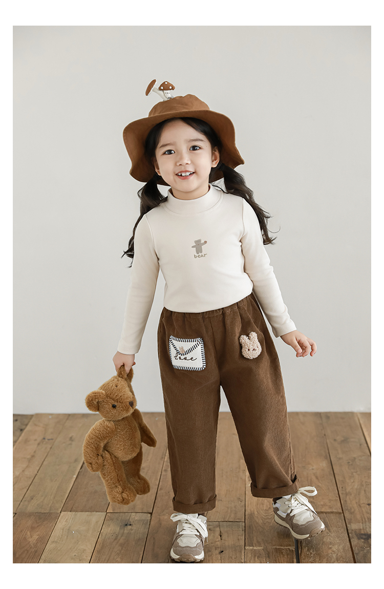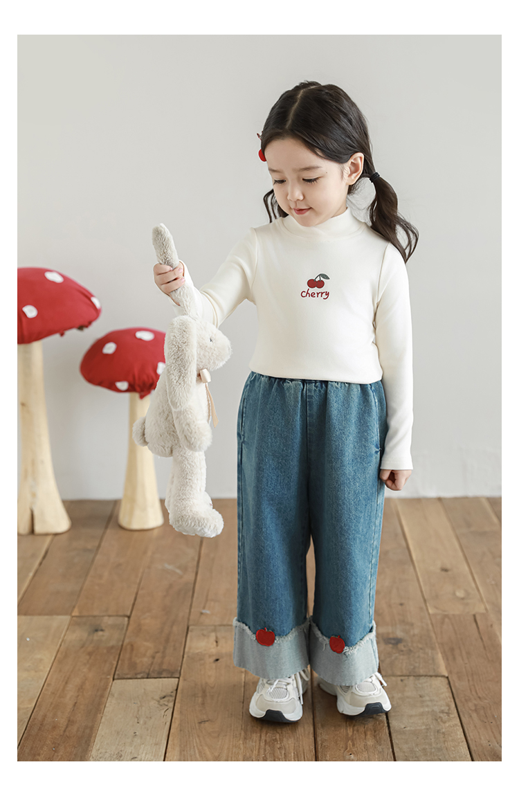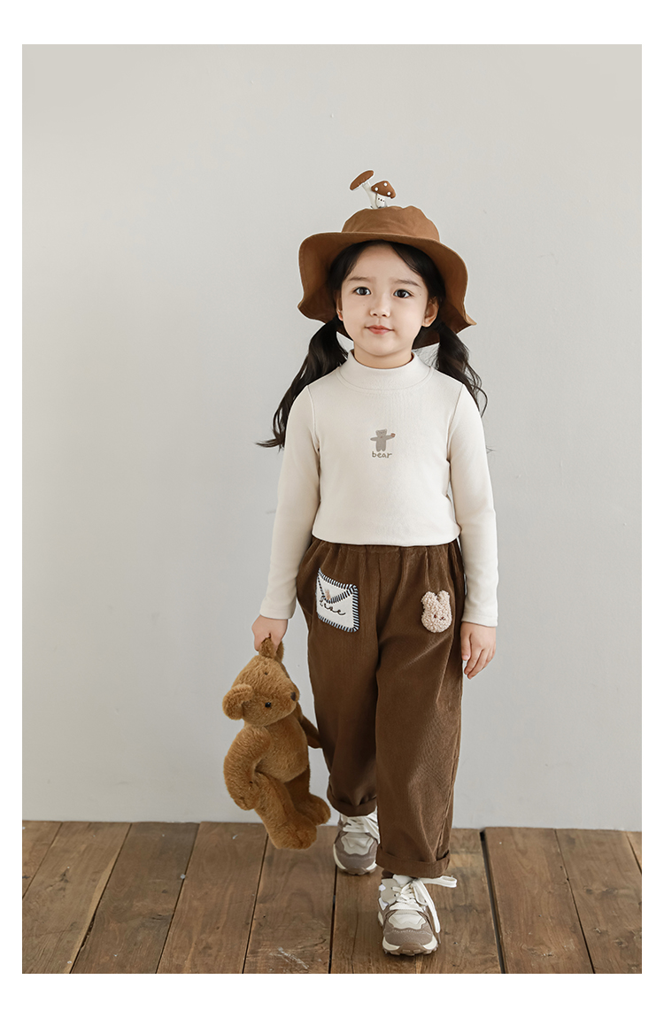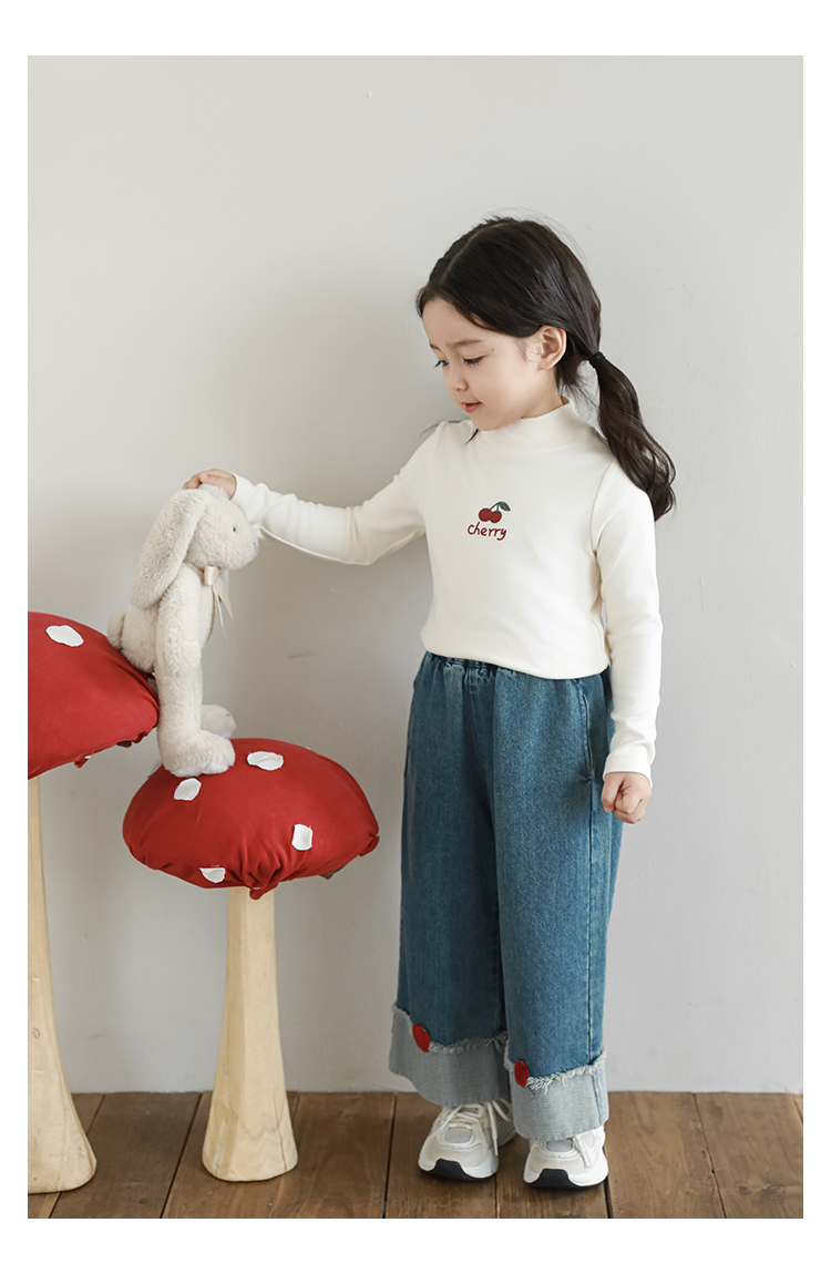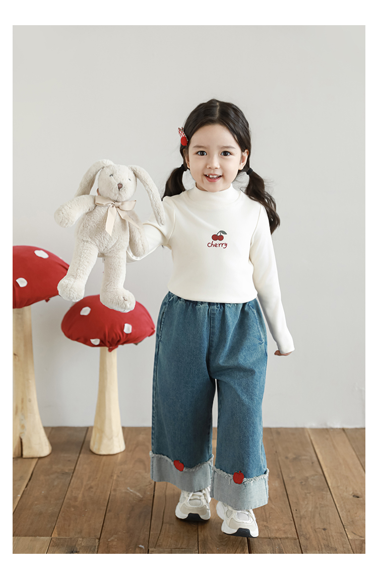 Wuri Boo 소녀의 만화 동물 높은 칼라 기지 셔츠 슬림핏 가을 어린이 귀여운 올 매치 캐주얼 티셔츠