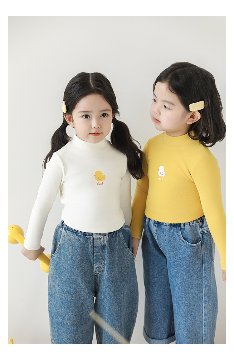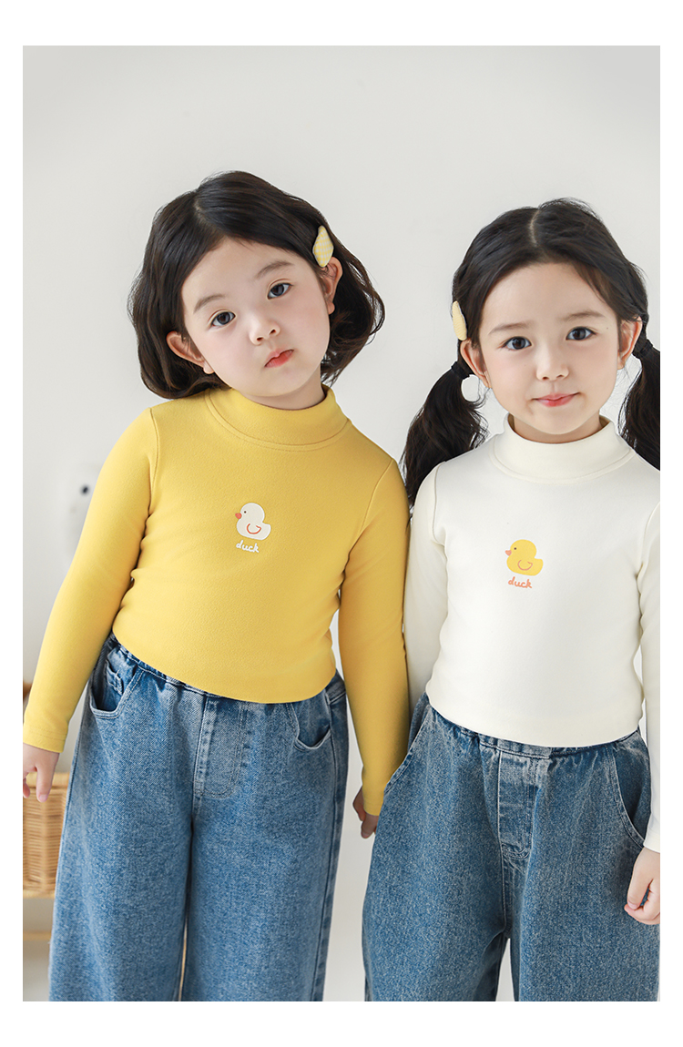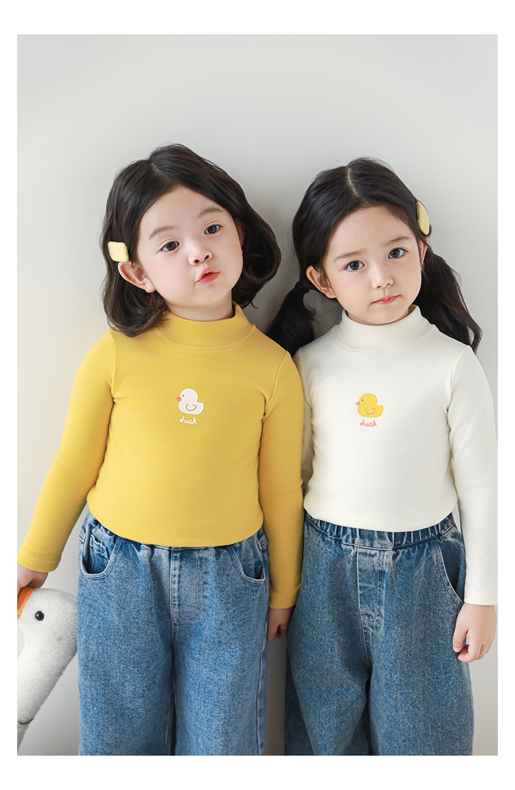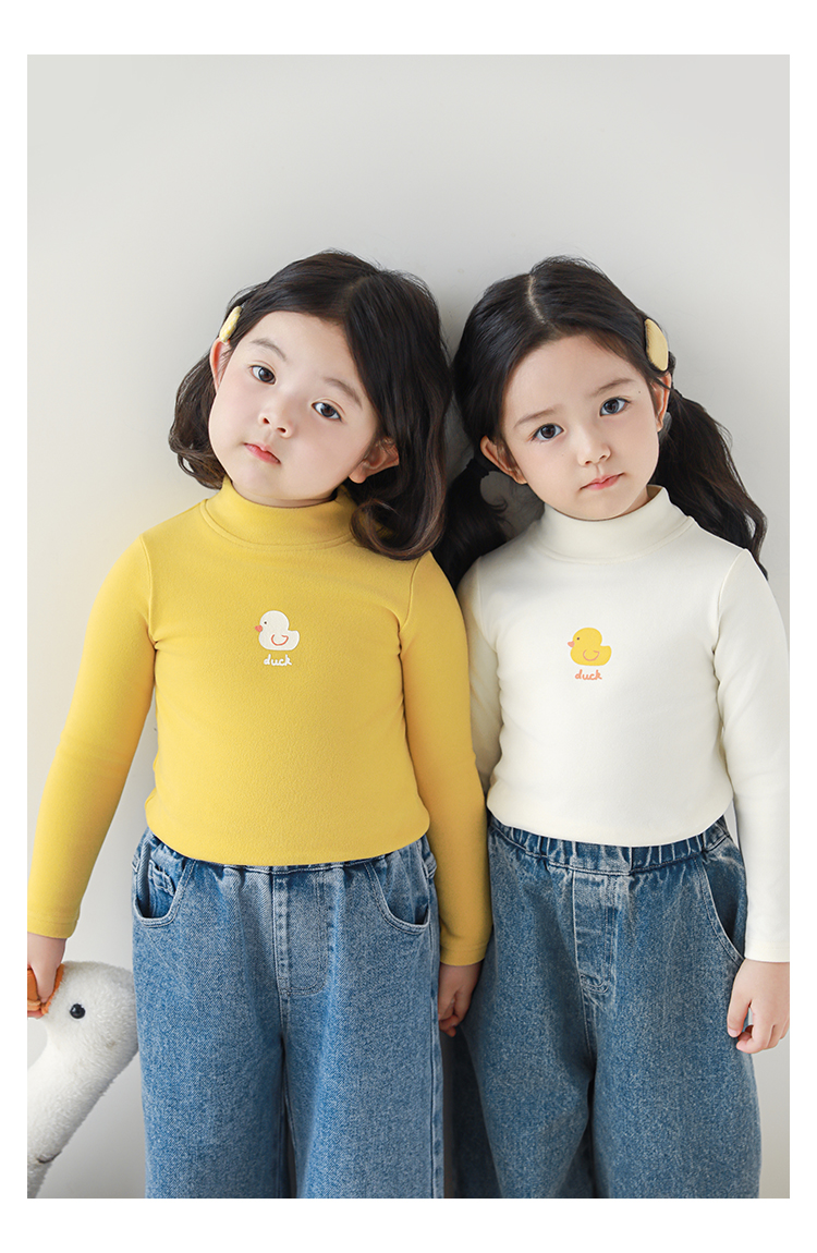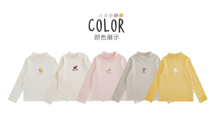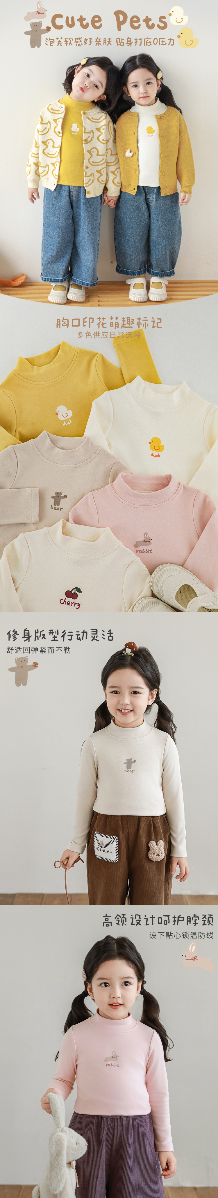Wuri Boo 소녀의 만화 동물 높은 칼라 기지 셔츠 슬림핏 가을 어린이 귀여운 올 매치 캐주얼 티셔츠스토어 가기