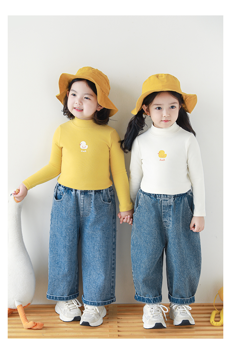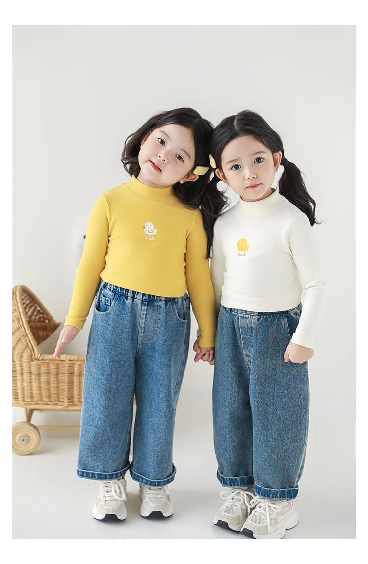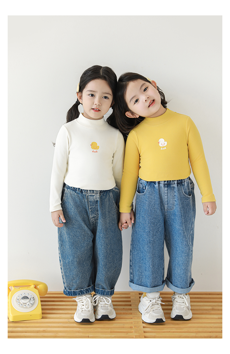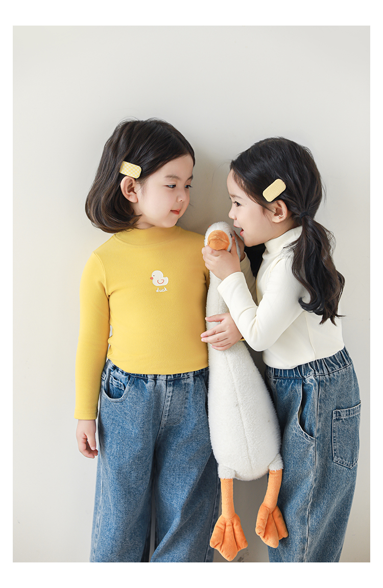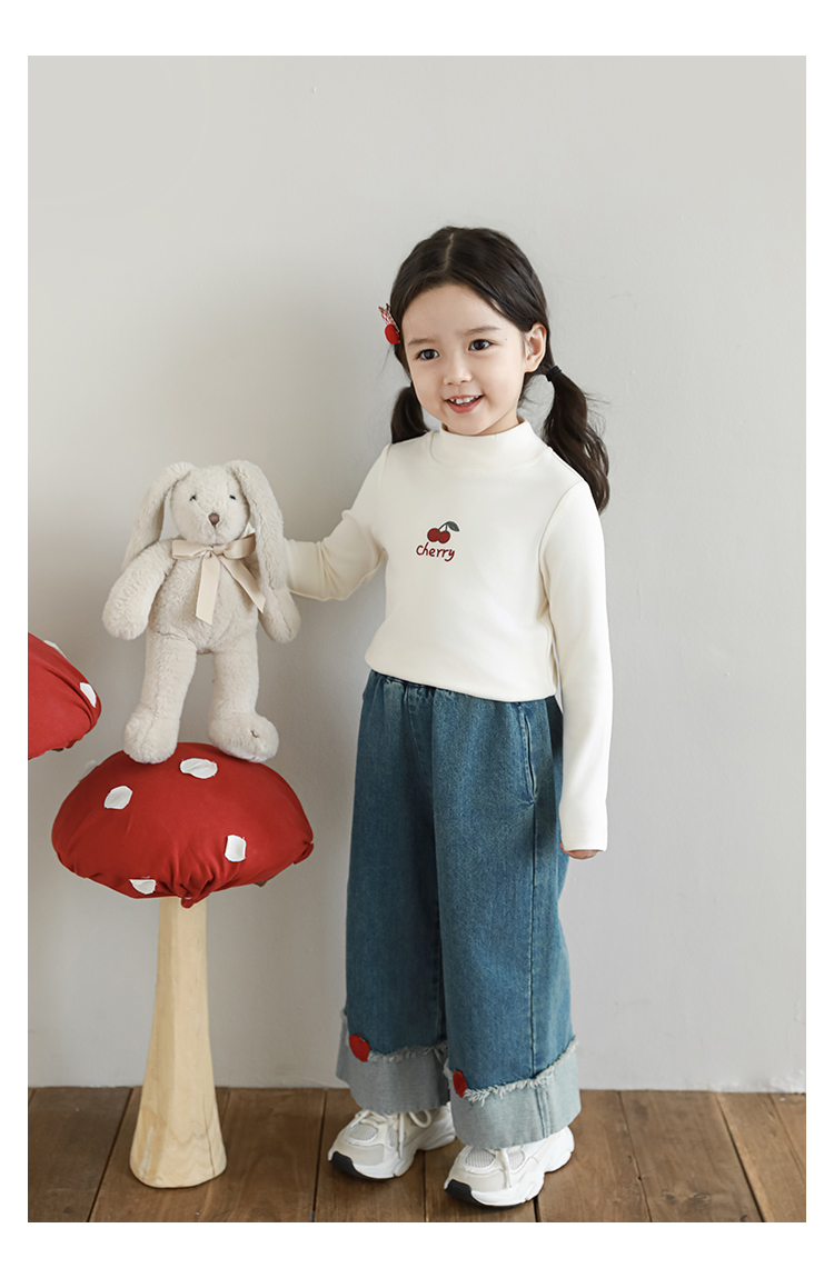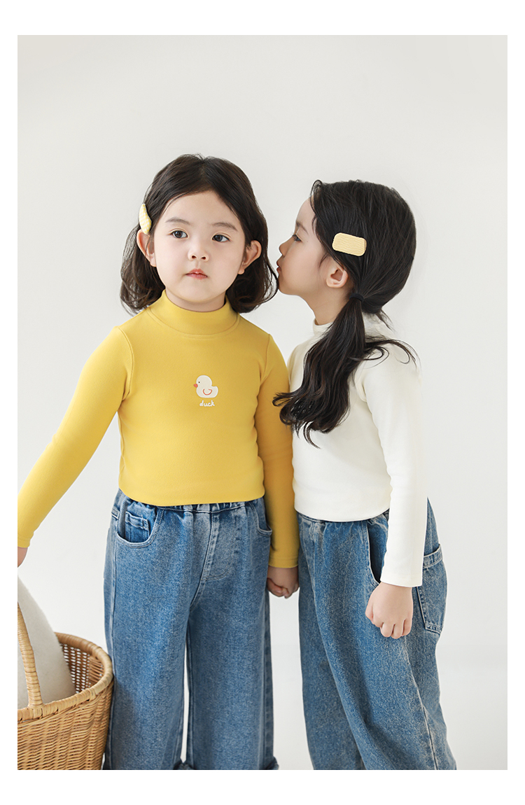 Wuri Boo 소녀의 만화 동물 높은 칼라 기지 셔츠 슬림핏 가을 어린이 귀여운 올 매치 캐주얼 티셔츠스토어 가기
