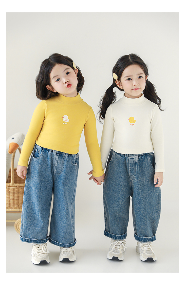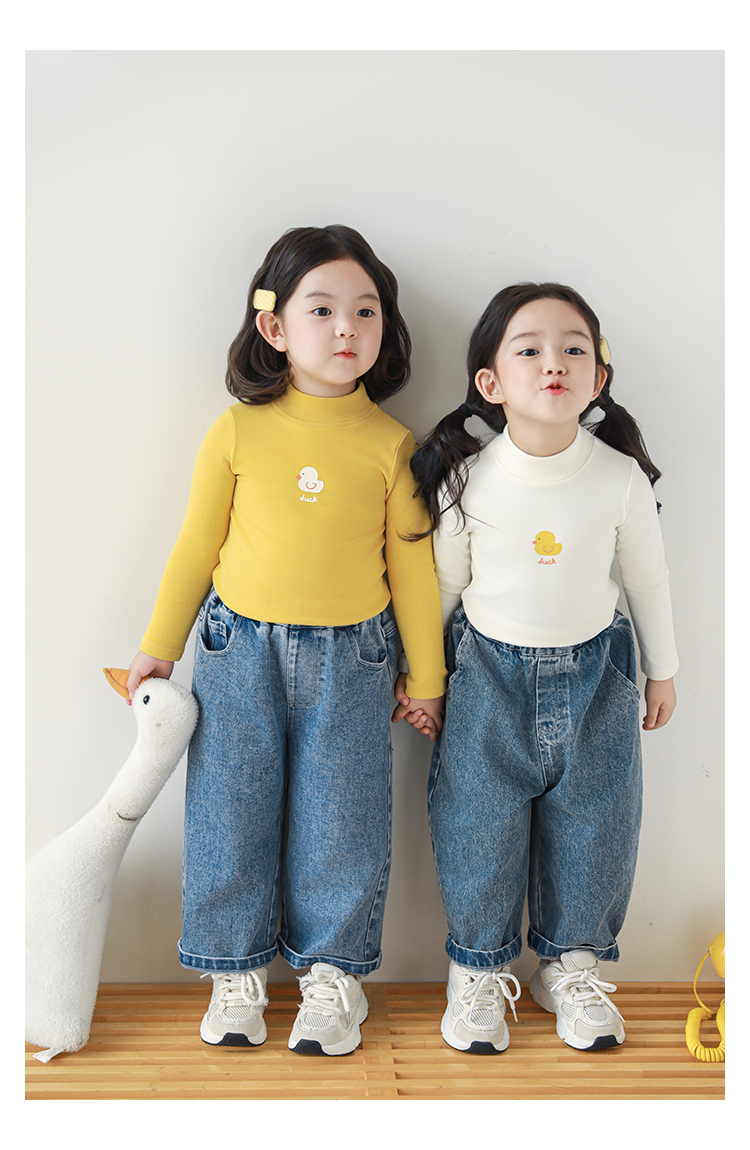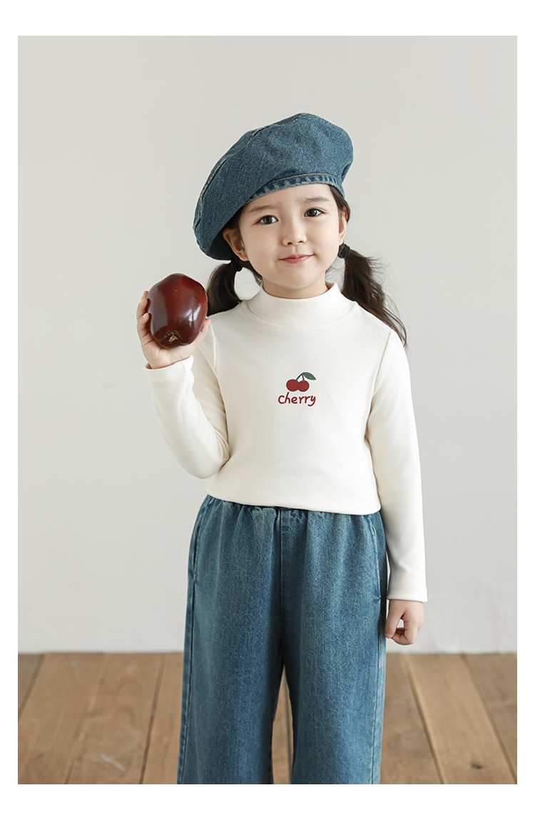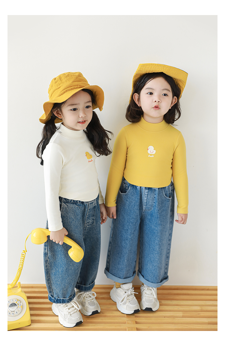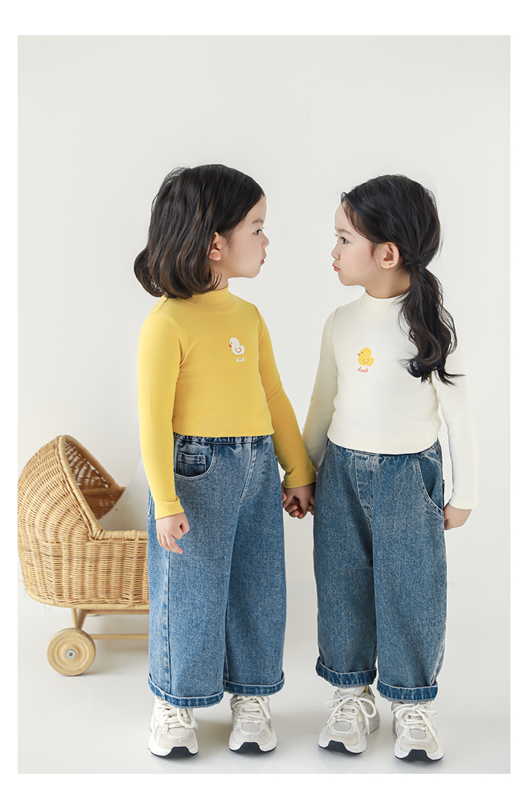 Wuri Boo 소녀의 만화 동물 높은 칼라 기지 셔츠 슬림핏 가을 어린이 귀여운 올 매치 캐주얼 티셔츠스토어 가기