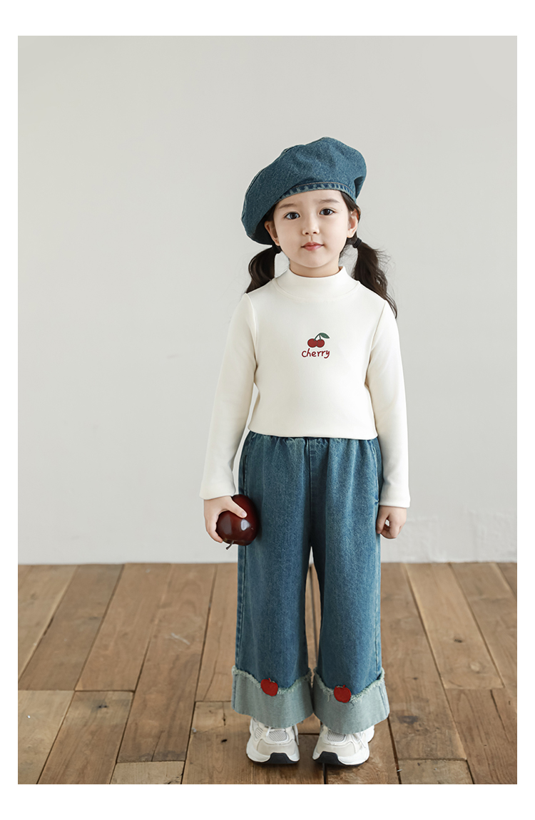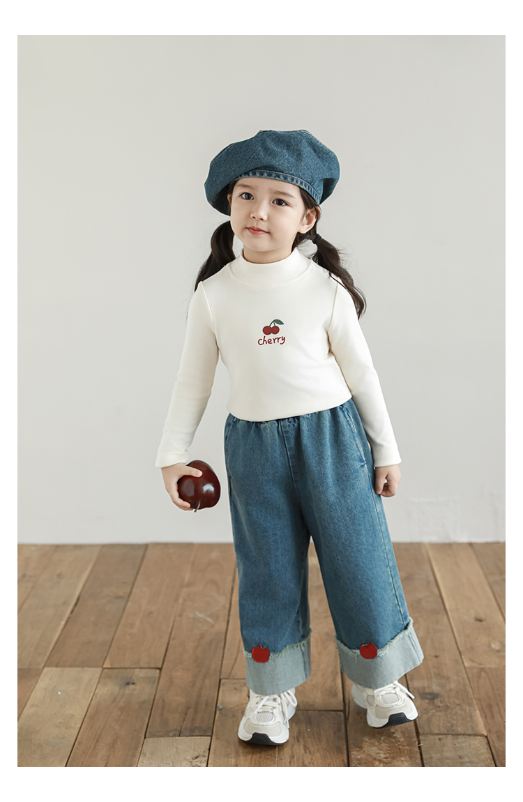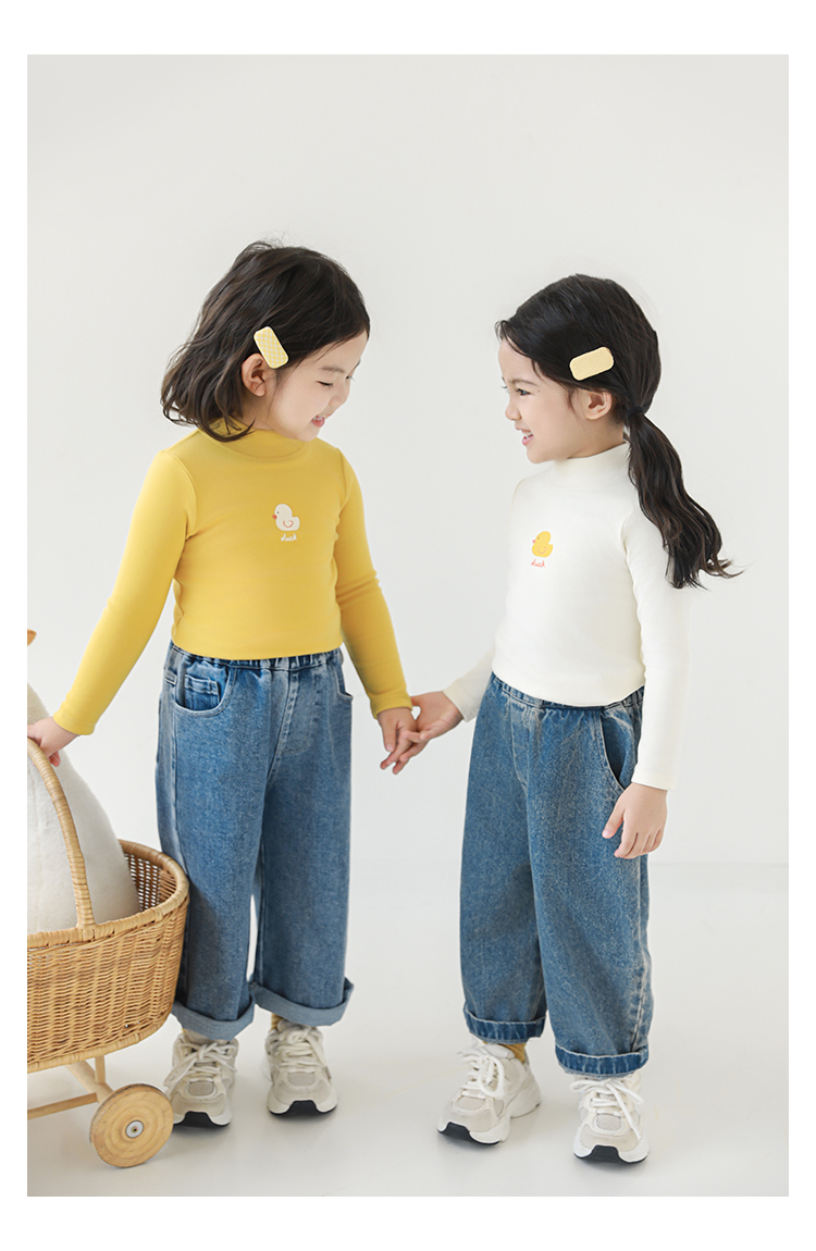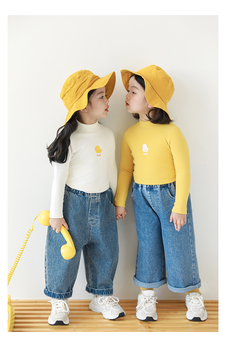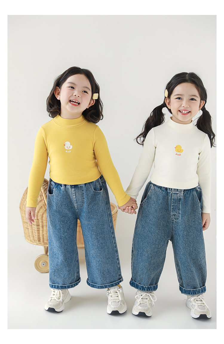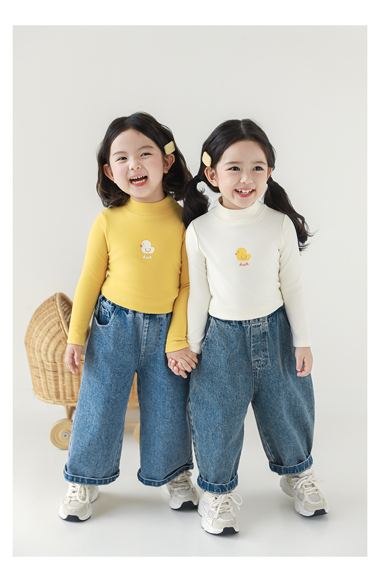 Wuri Boo 소녀의 만화 동물 높은 칼라 기지 셔츠 슬림핏 가을 어린이 귀여운 올 매치 캐주얼 티셔츠스토어 가기
