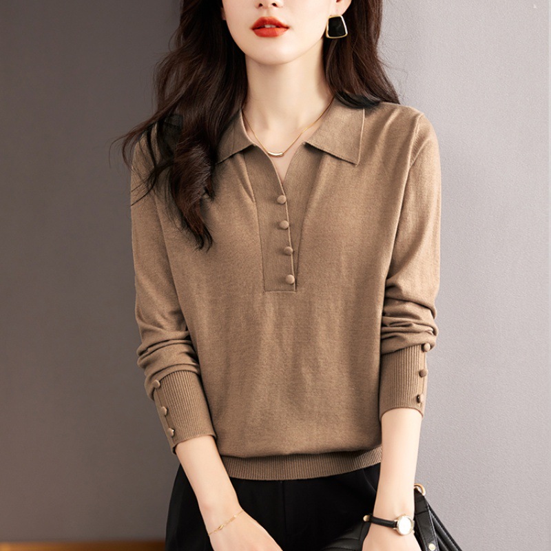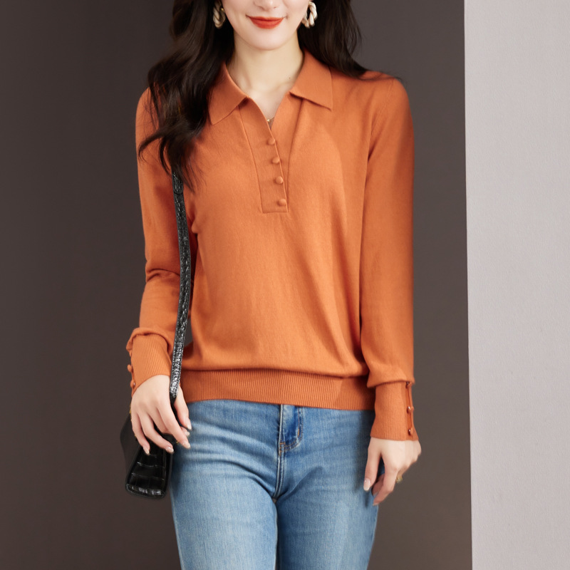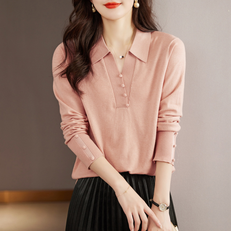 2024 년 가을과 겨울 새로운 폴로 칼라 니트 최고 여성베이스 셔츠 솔리드 컬러 내베이스 셔츠 외부 착용 긴 소매 스웨터