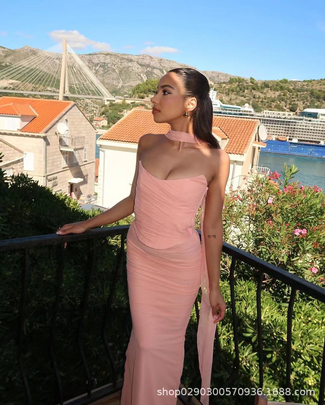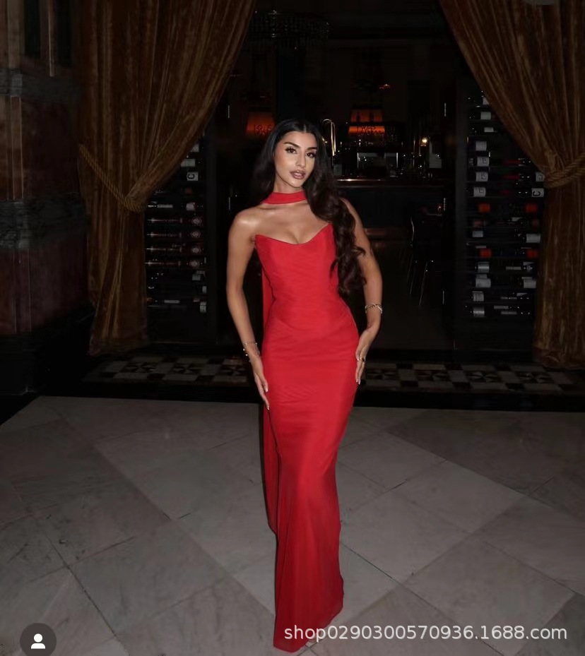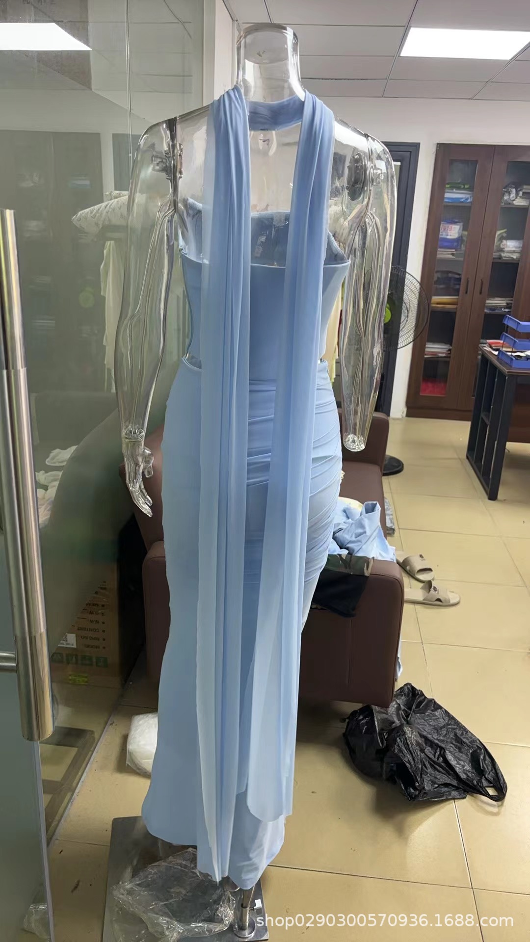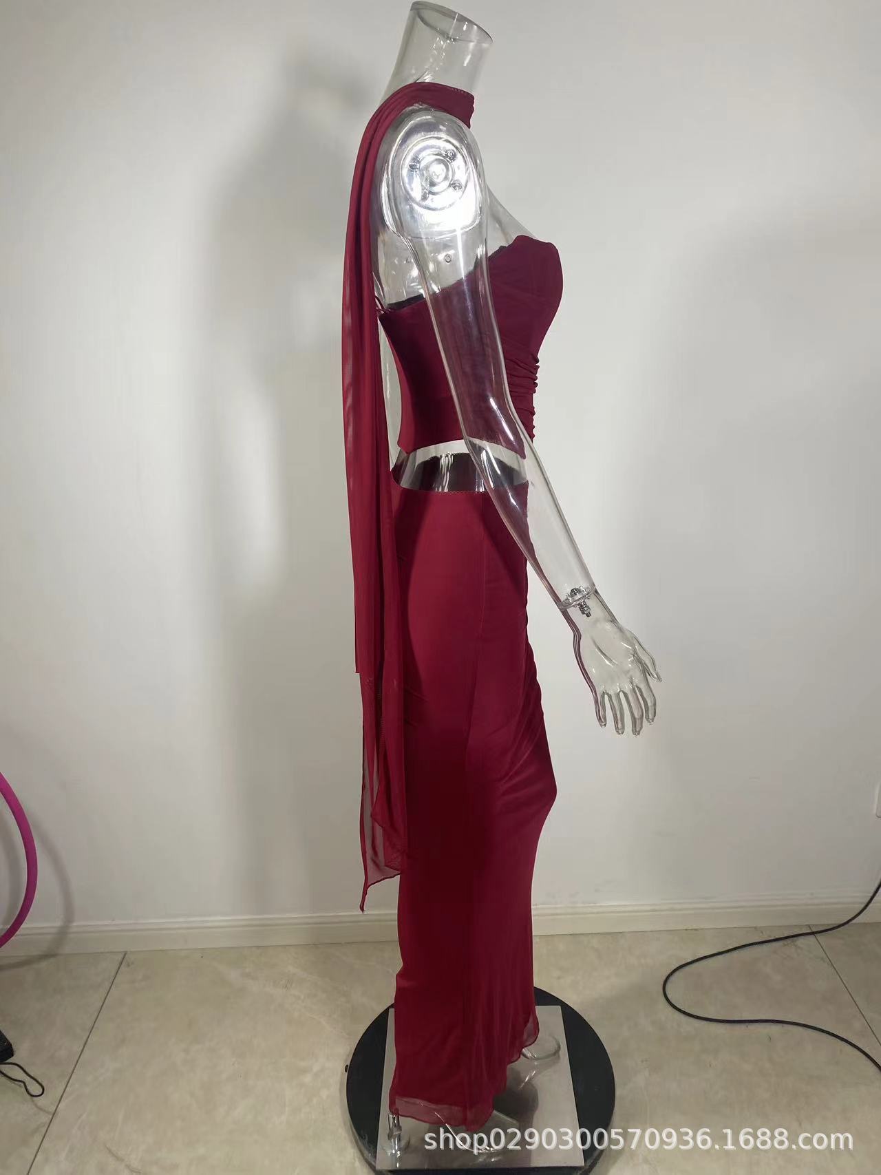 유럽과 미국 스타일의 여성 가을 새로운 스타일의 기질 하늘색 튜브 상단/높은 허리 오버 스커트 세트 타이트한 원피스스토어 가기