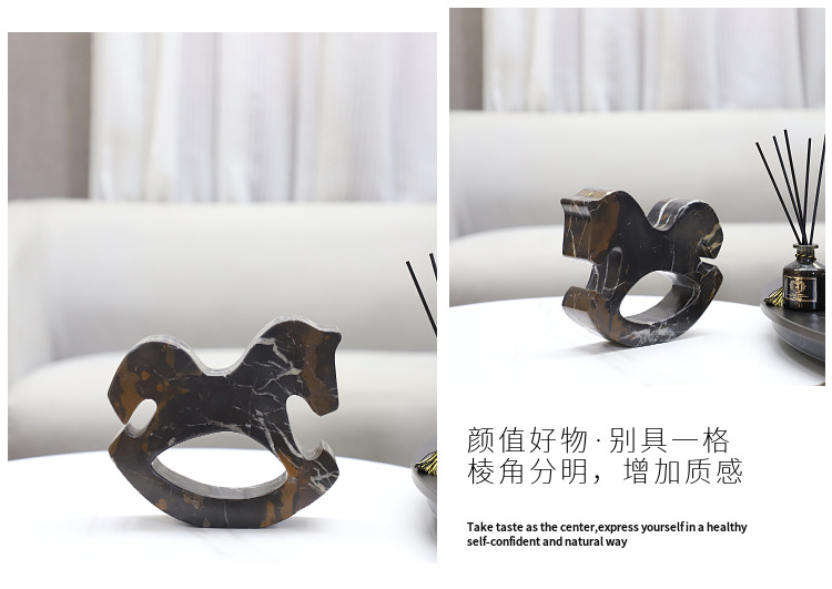 현대 간단한 자연 대리석 흔들 말 동물 예술 장식품 거실 TV 내각 복도 홈 장식