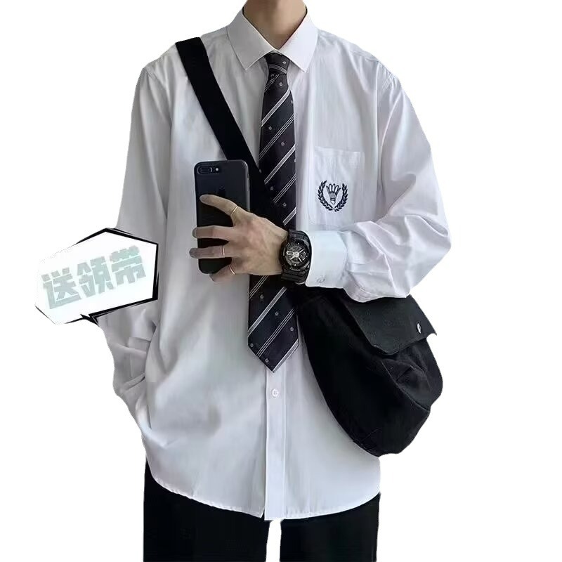 흰색 긴 소매 셔츠 남자의 일본 대학 스타일 소금 스타일 신선한 스타일 느슨한 패셔너블 프라이드 스트리트 dk 유니폼 클래스 옷 셔츠