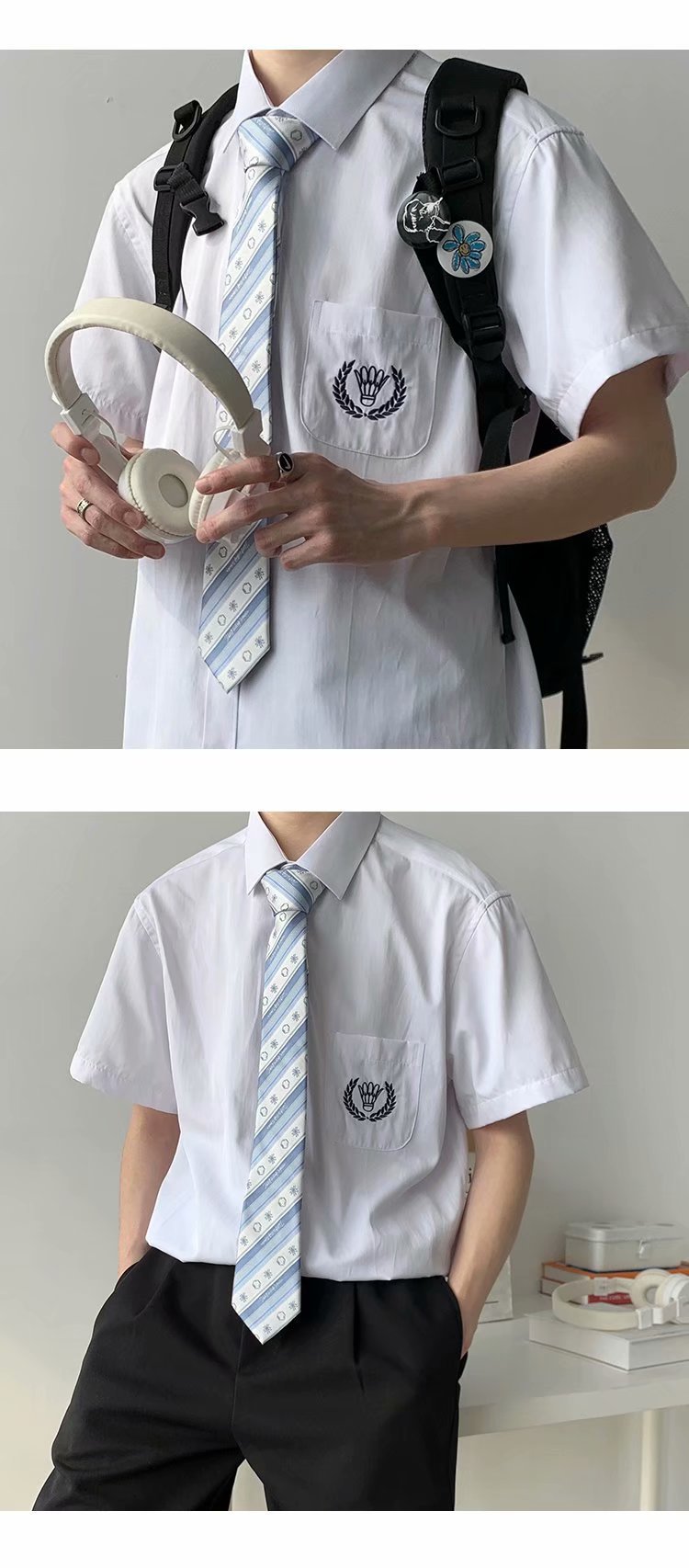 • 노스 141 싱글 반팔 셔츠 [무료 파란색과 흰색 넥타이]