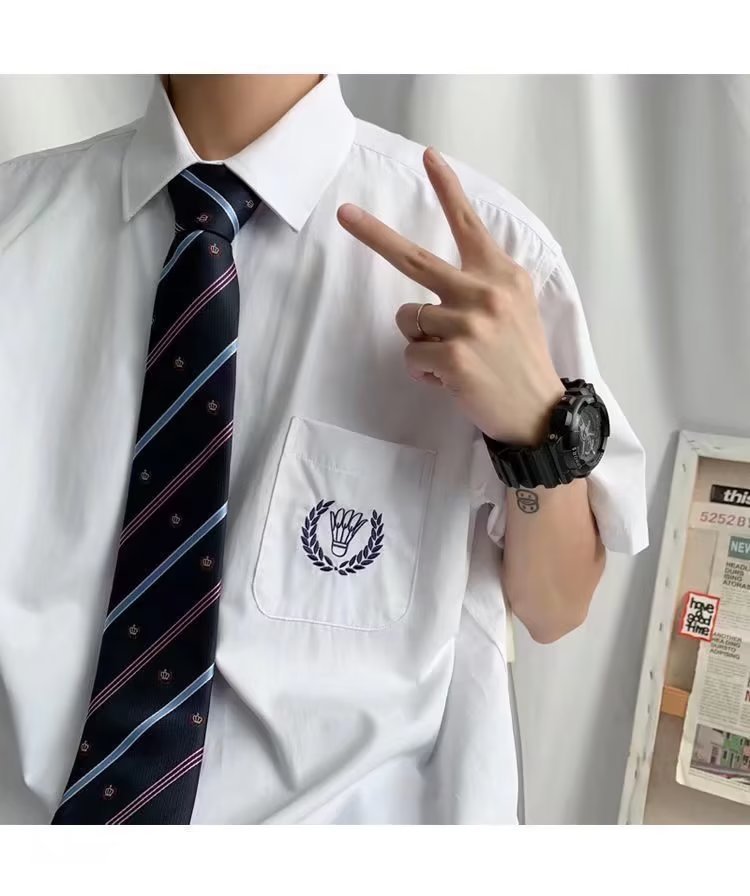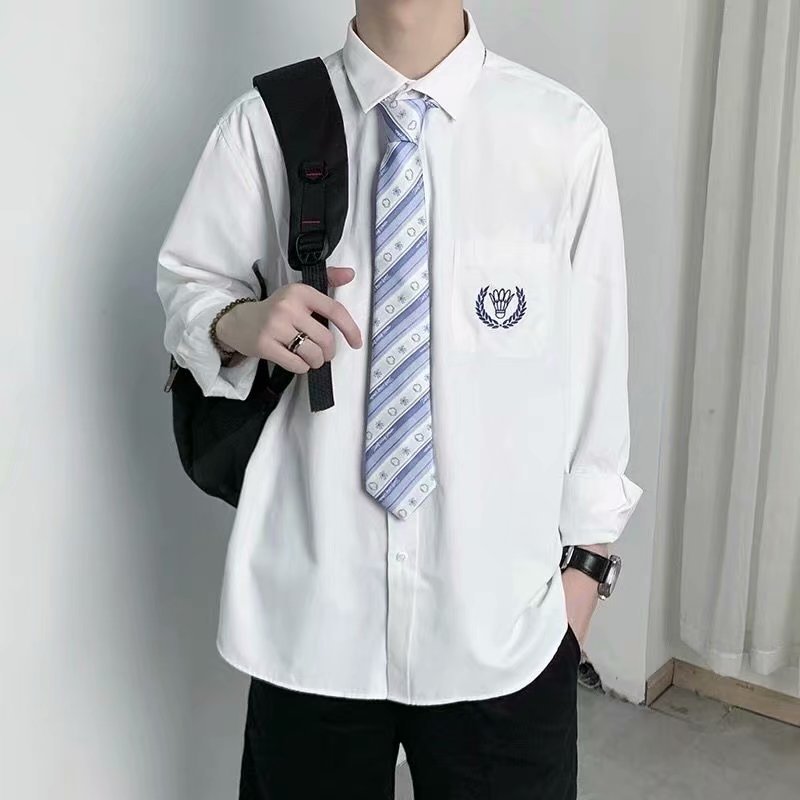 흰색 긴 소매 셔츠 남자의 일본 대학 스타일 소금 스타일 신선한 스타일 느슨한 패셔너블 프라이드 스트리트 dk 유니폼 클래스 옷 셔츠스토어 가기