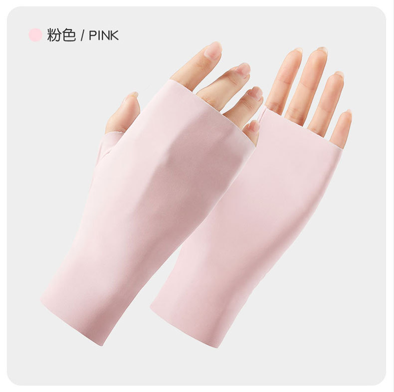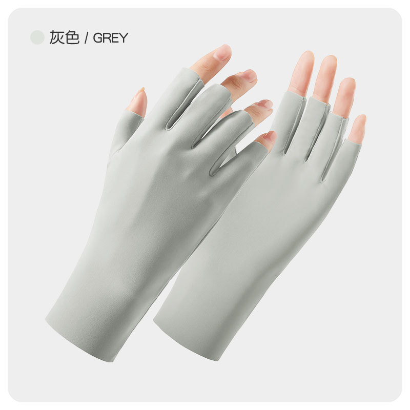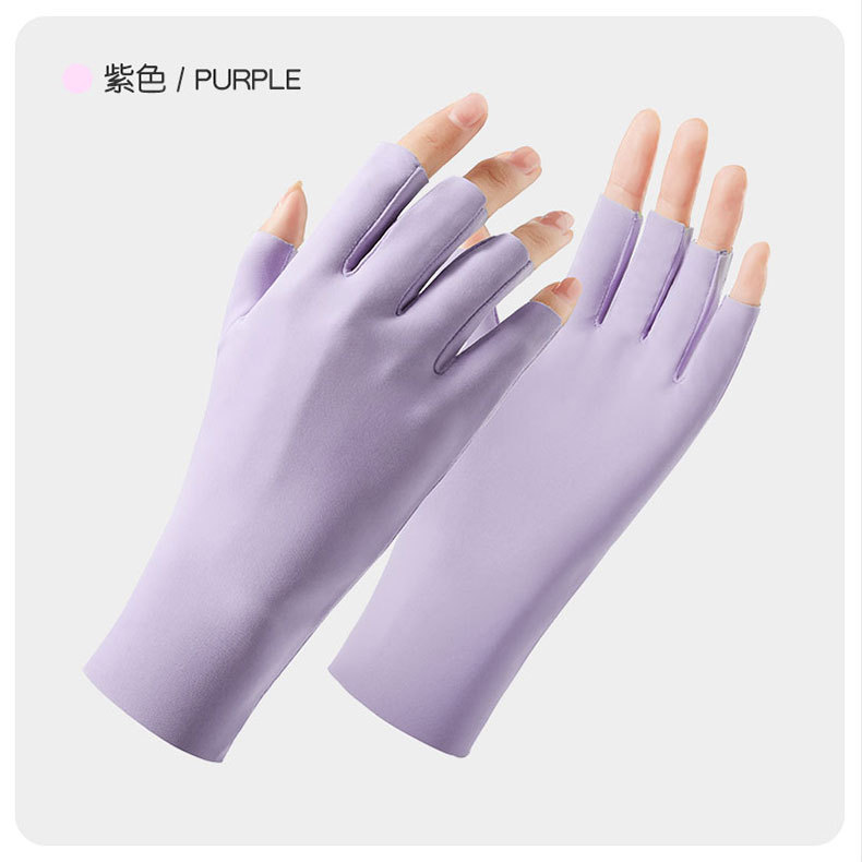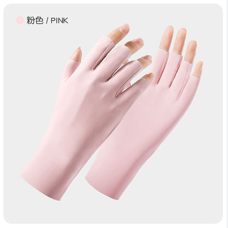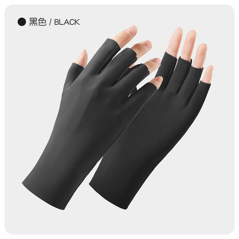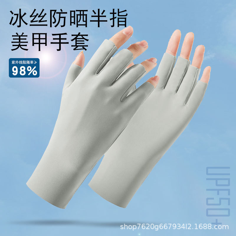 나일론 아이스 실크 반손가락 자외선 차단 장갑 여성용 손가락 없는 자외선 차단 야외 라이딩 통기성 네일아트 UPF50+ 장갑