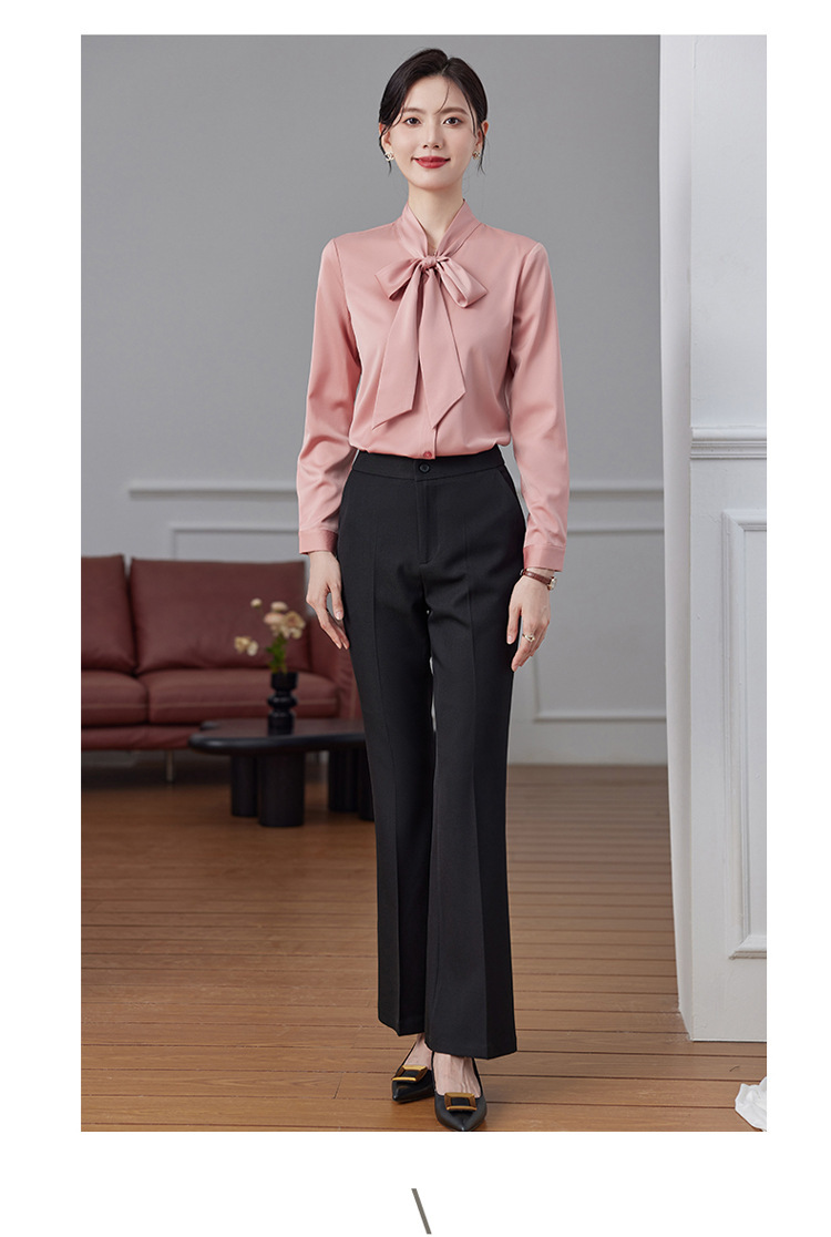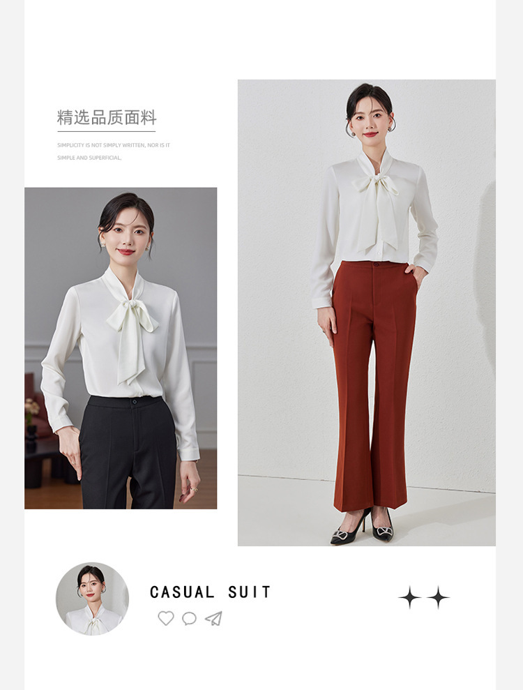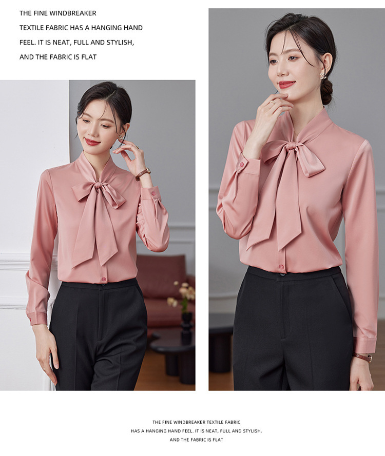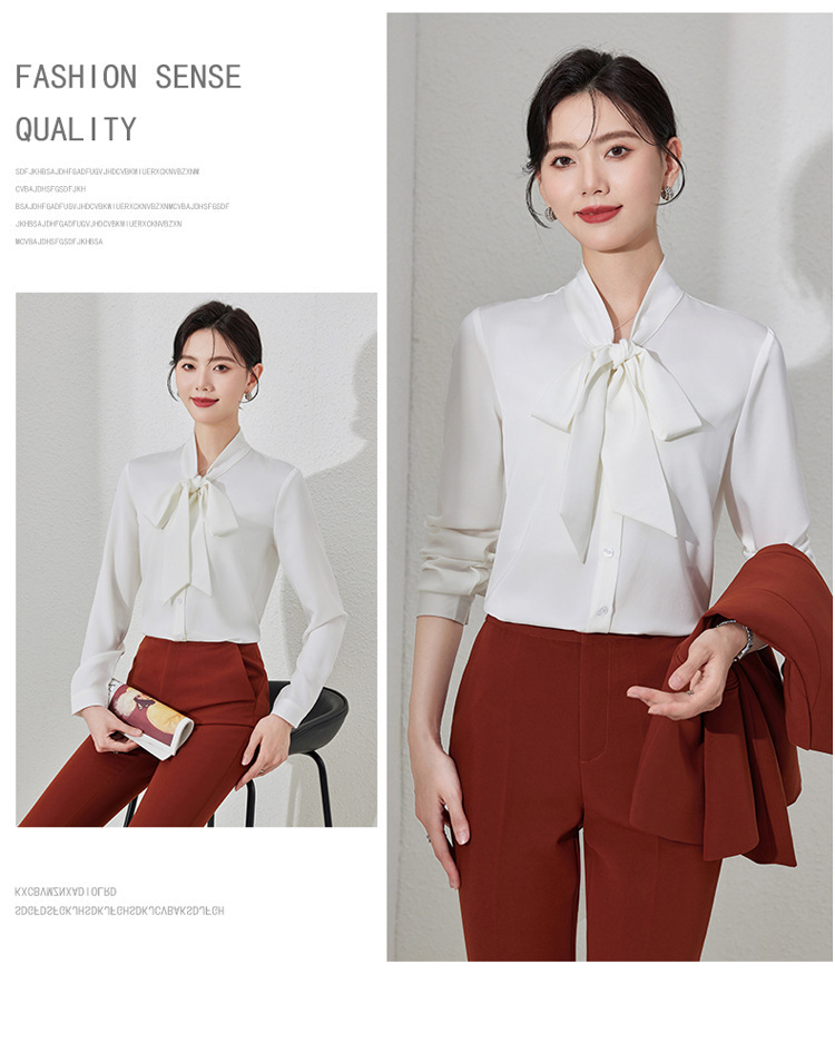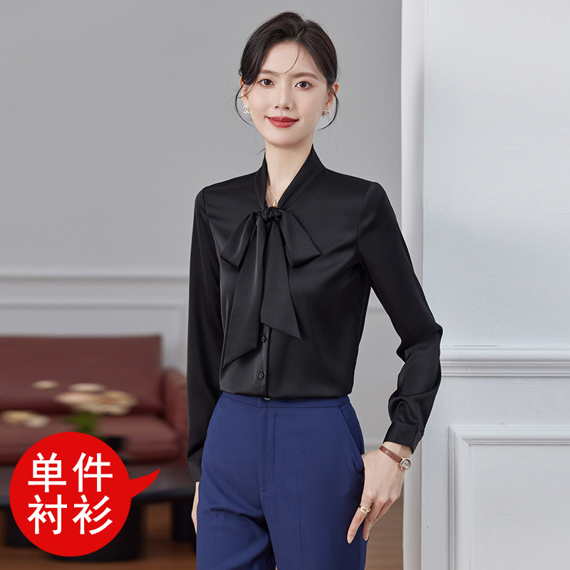 JY8556 화이트 쉬폰 긴팔 셔츠 여자의 2024 가을 새 리본 탑 간단한 우아한 통근 셔츠스토어 가기