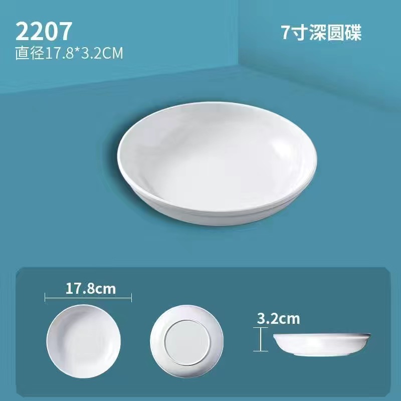 멜라민 모방 도자기 플레이트 호텔 레스토랑 뷔페 디스크 두꺼운 드롭 방지 플라스틱 접시 덮은 쌀과 물 튀긴 국수 볶음 접시 볶음