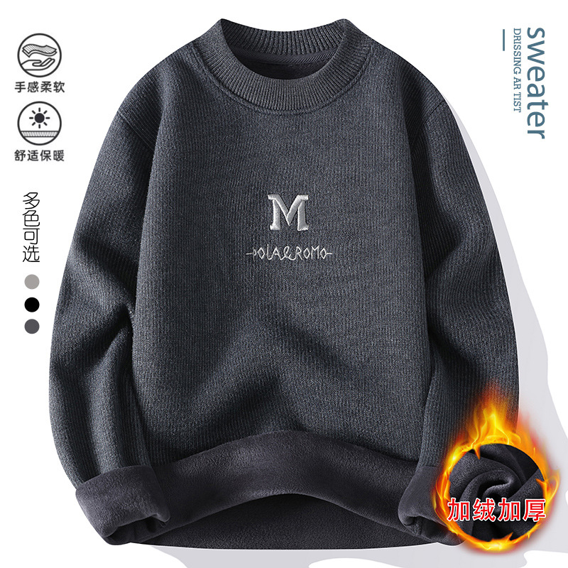 겨울 스웨터 남자의 새로운 라운드 넥 솔리드 컬러 니트 스웨터 봄과 가을 스웨터 핸섬 트위스트 기모 두꺼운 베이스 셔츠스토어 가기