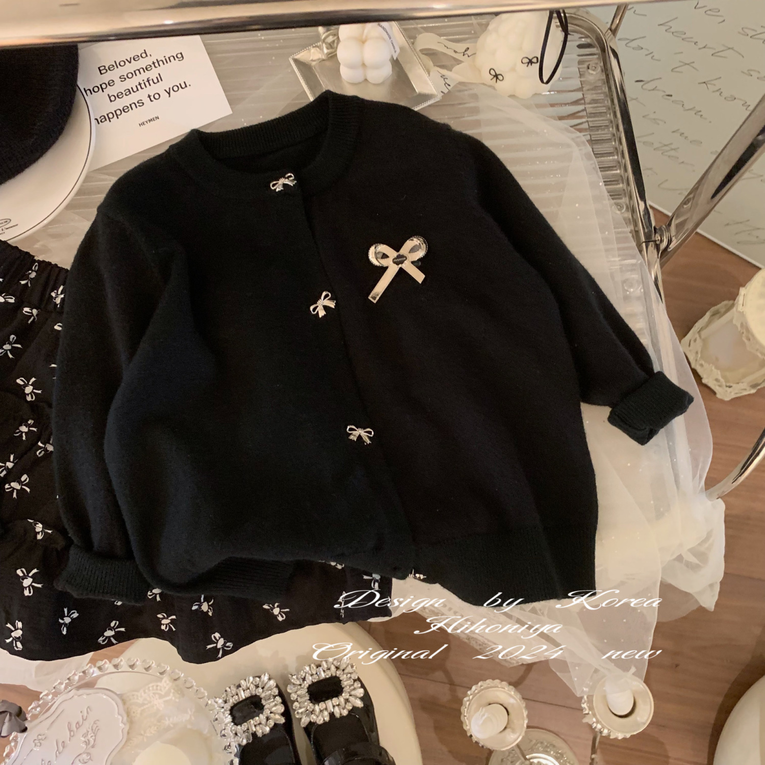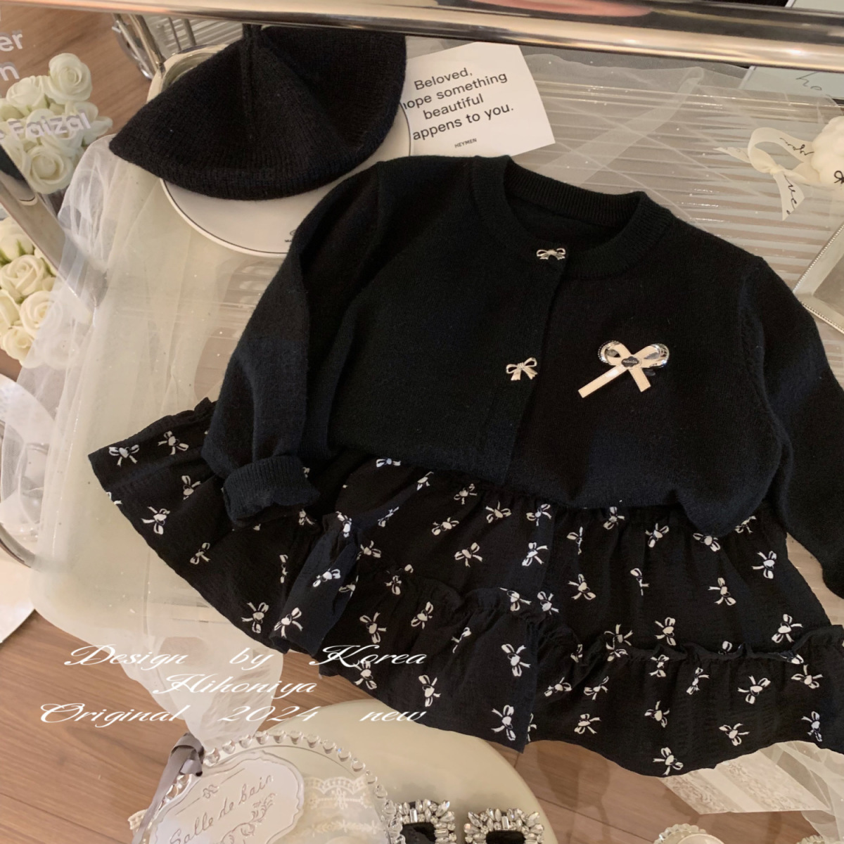 가을과 겨울 새로운 소녀의 빈티지 3 차원 활 장식 니트 카디건 코트 아기 소녀의 외국 스타일 스웨터스토어 가기