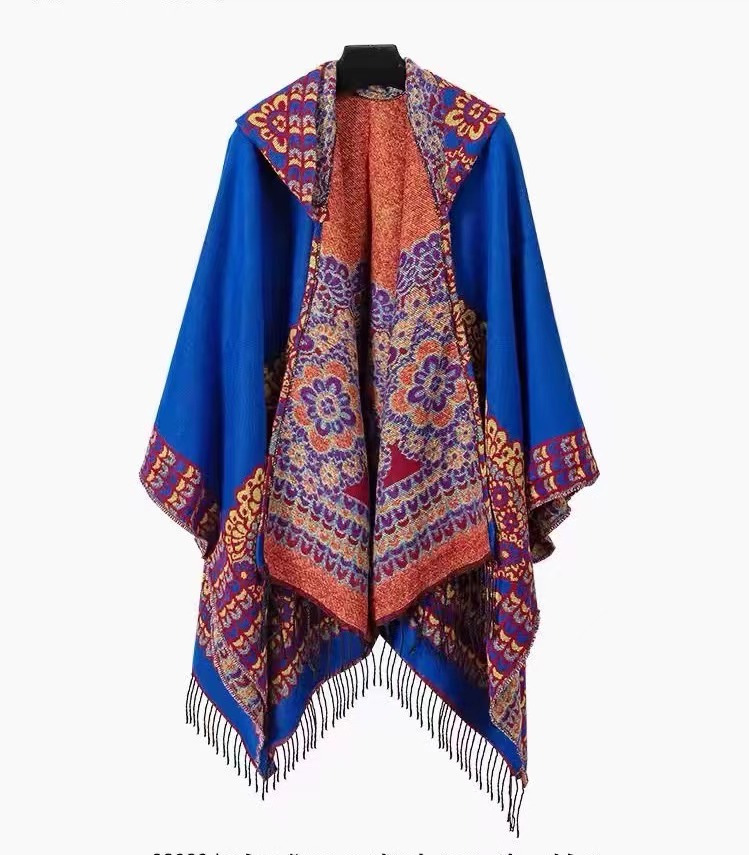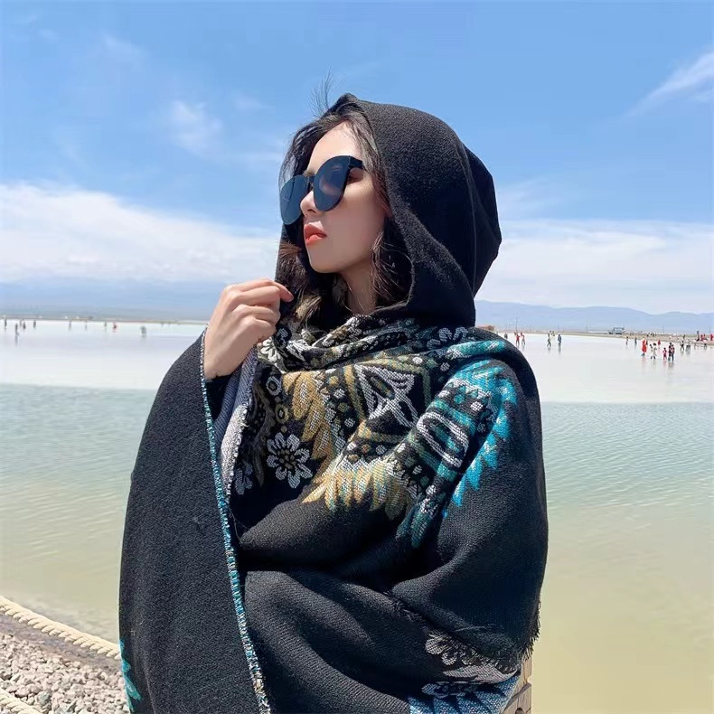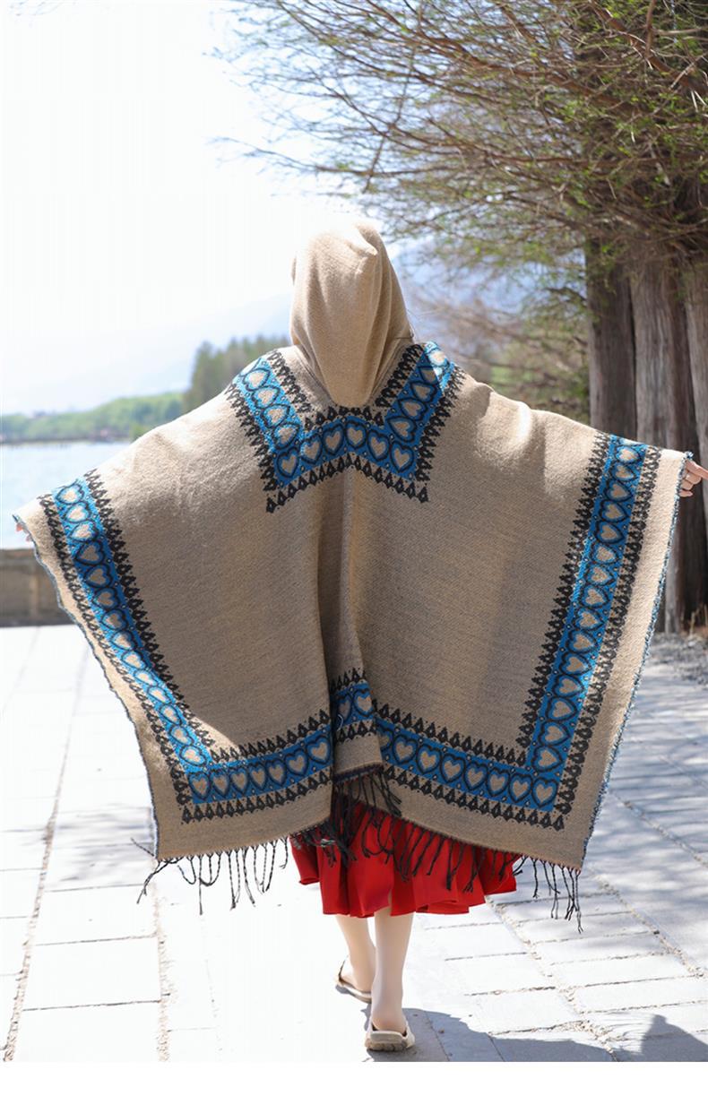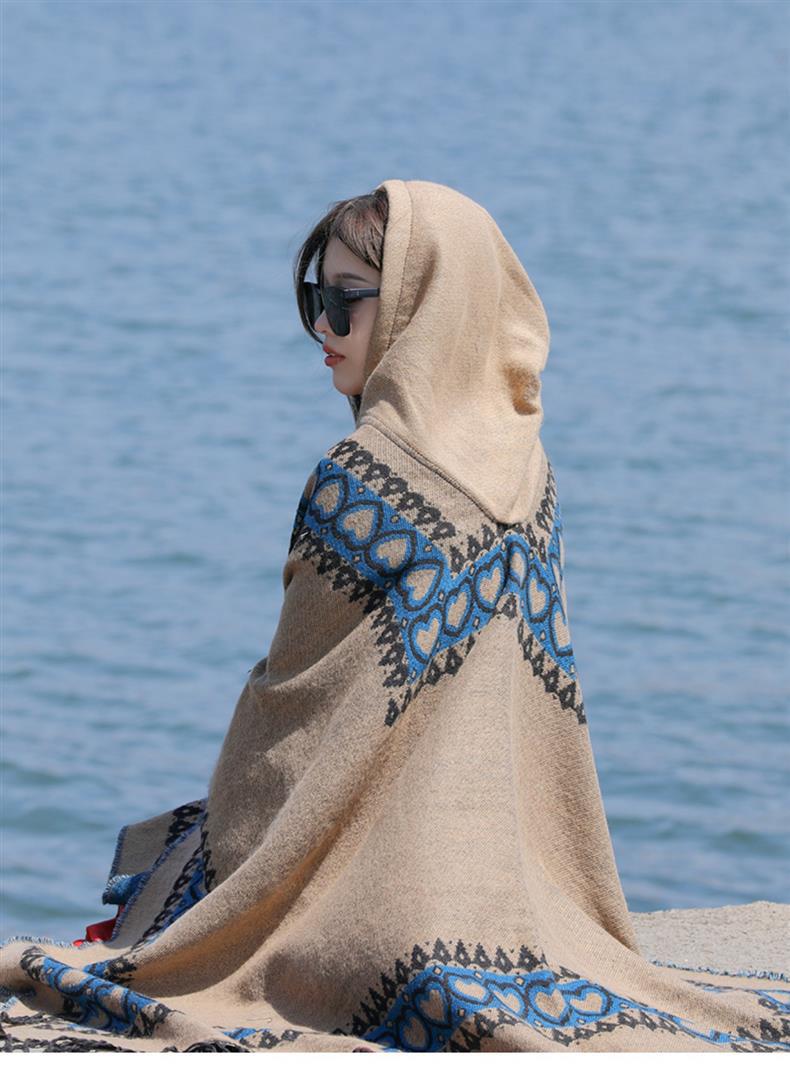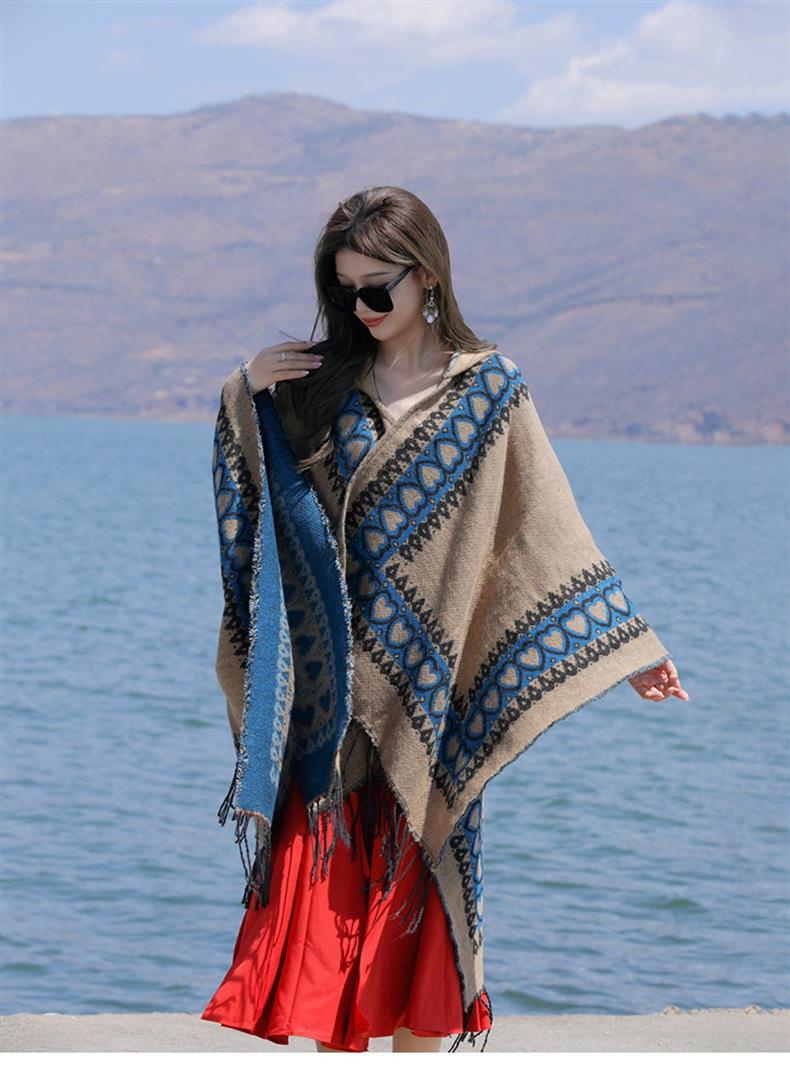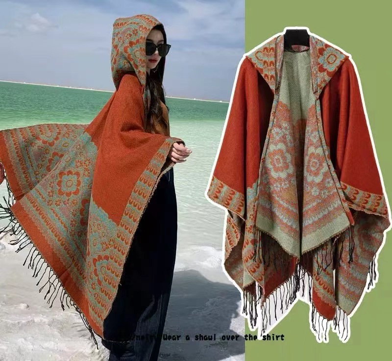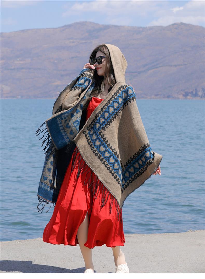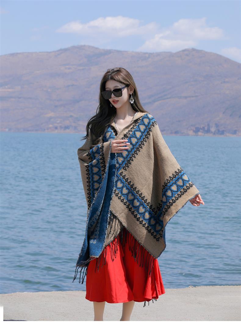 붉은 민족 스타일 스카프 두꺼운 따뜻한 목도리 여성 여행 복장 윈난 신장 티베트 케이프 후드 망토스토어 가기