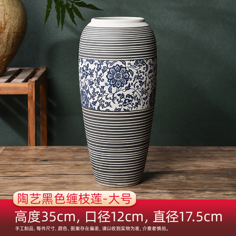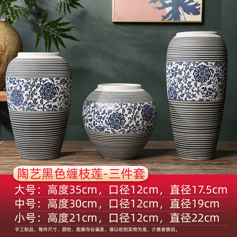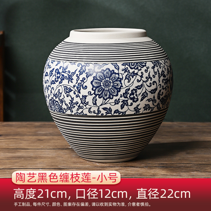 홈 장식 장식 Jingdezhen 세라믹 꽃 꽃병 새로운 중국 스타일 레트로 블루와 화이트 세라믹 아트 블랙 Zhilian