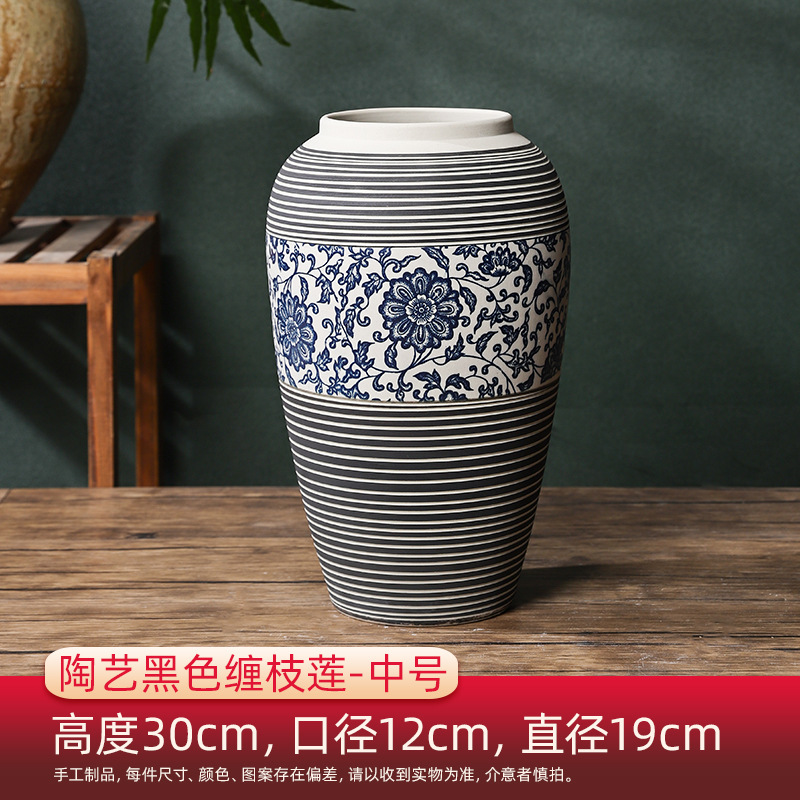 홈 장식 장식 Jingdezhen 세라믹 꽃 꽃병 새로운 중국 스타일 레트로 블루와 화이트 세라믹 아트 블랙 Zhilian스토어 가기