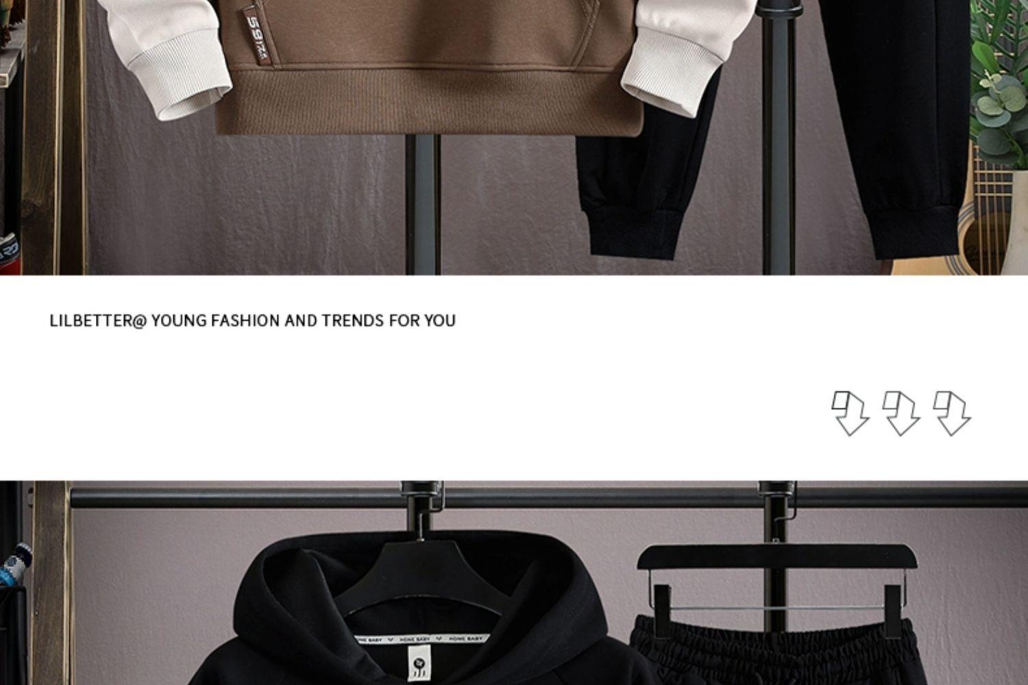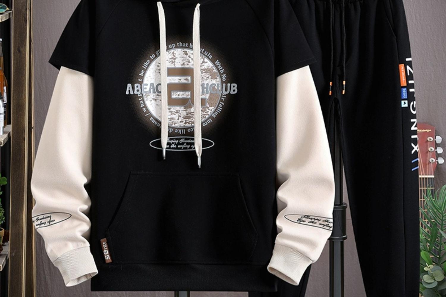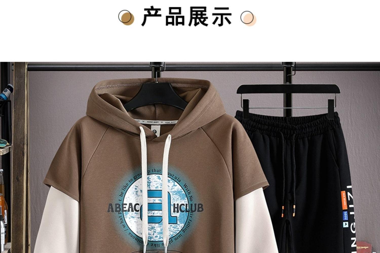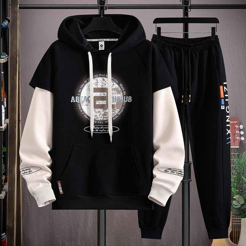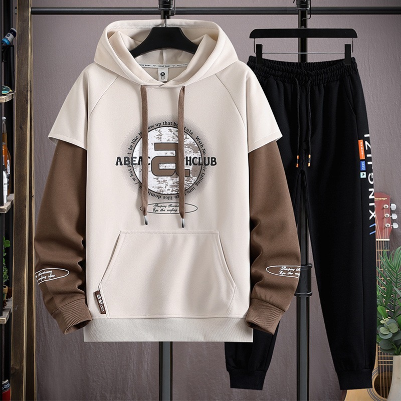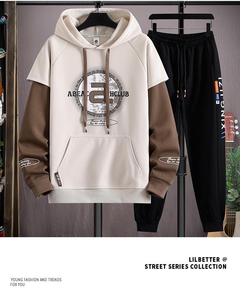 봄과 가을 세트 가짜 투피스 캐주얼 스포츠 세트 느슨한 슈퍼 플러스 사이즈 남성 의류 세트스토어 가기