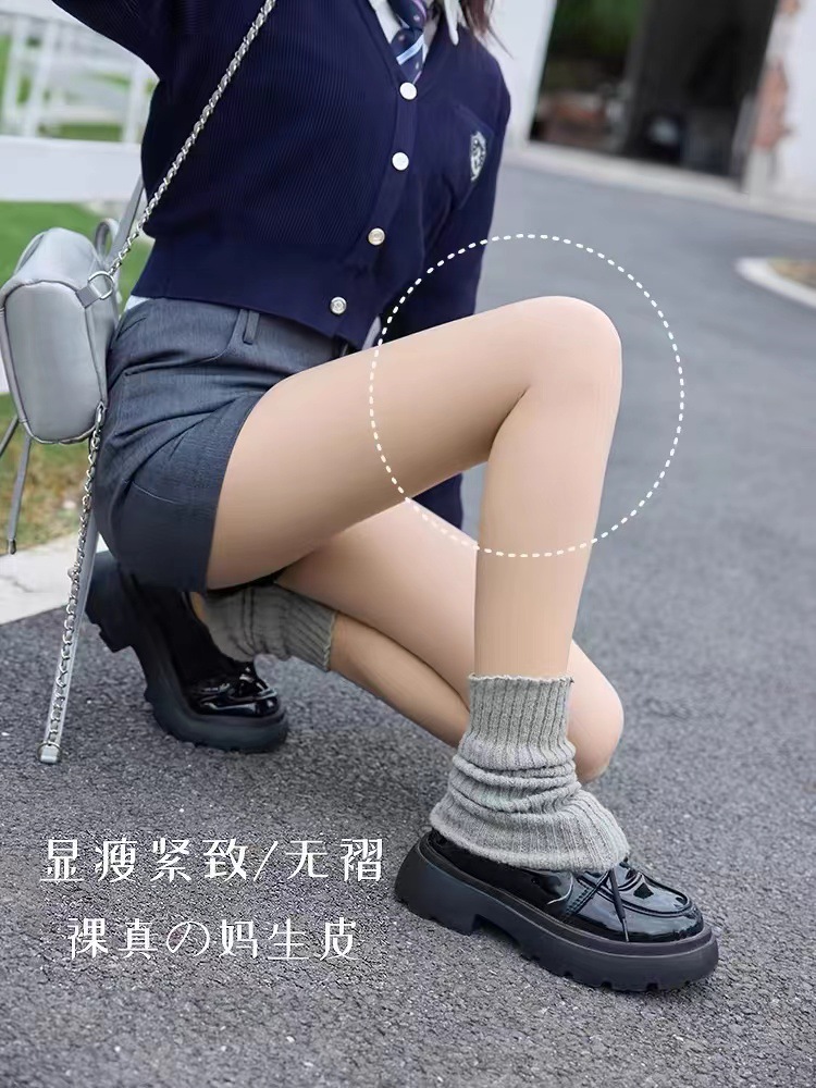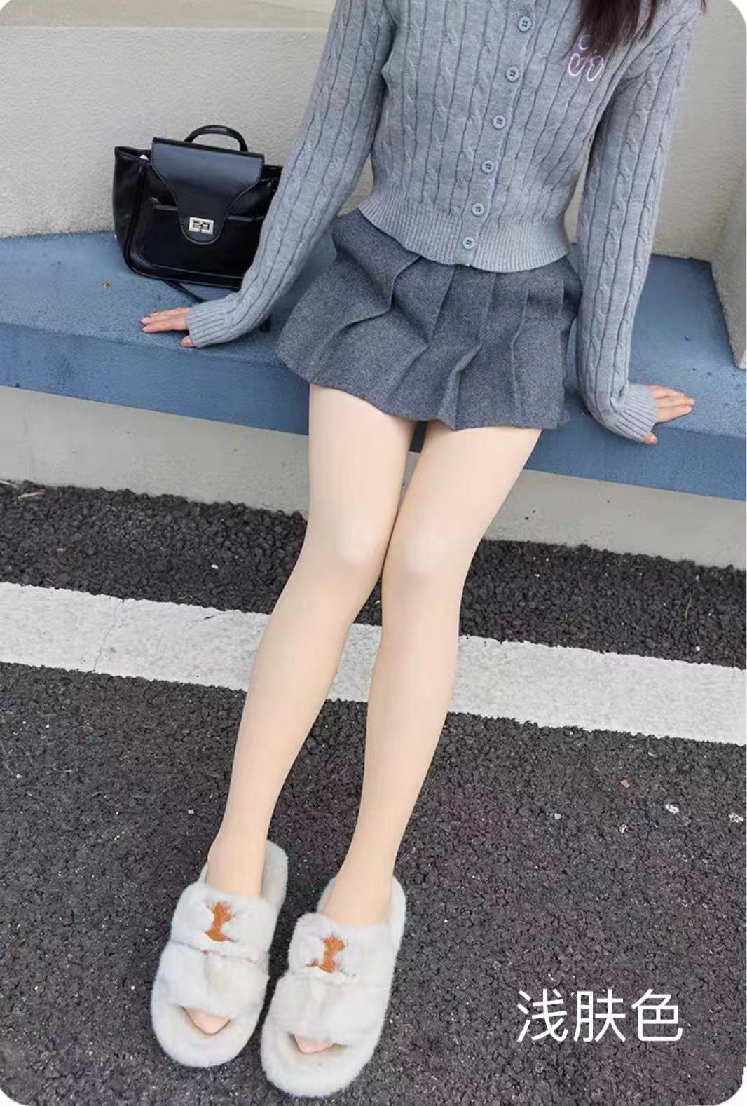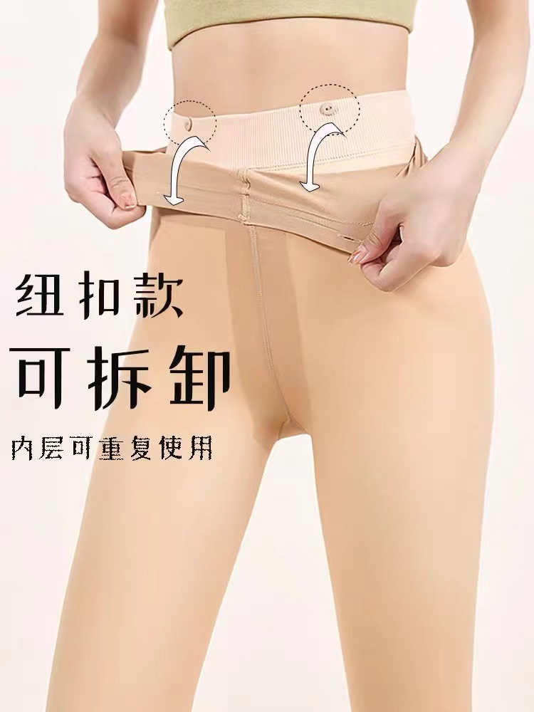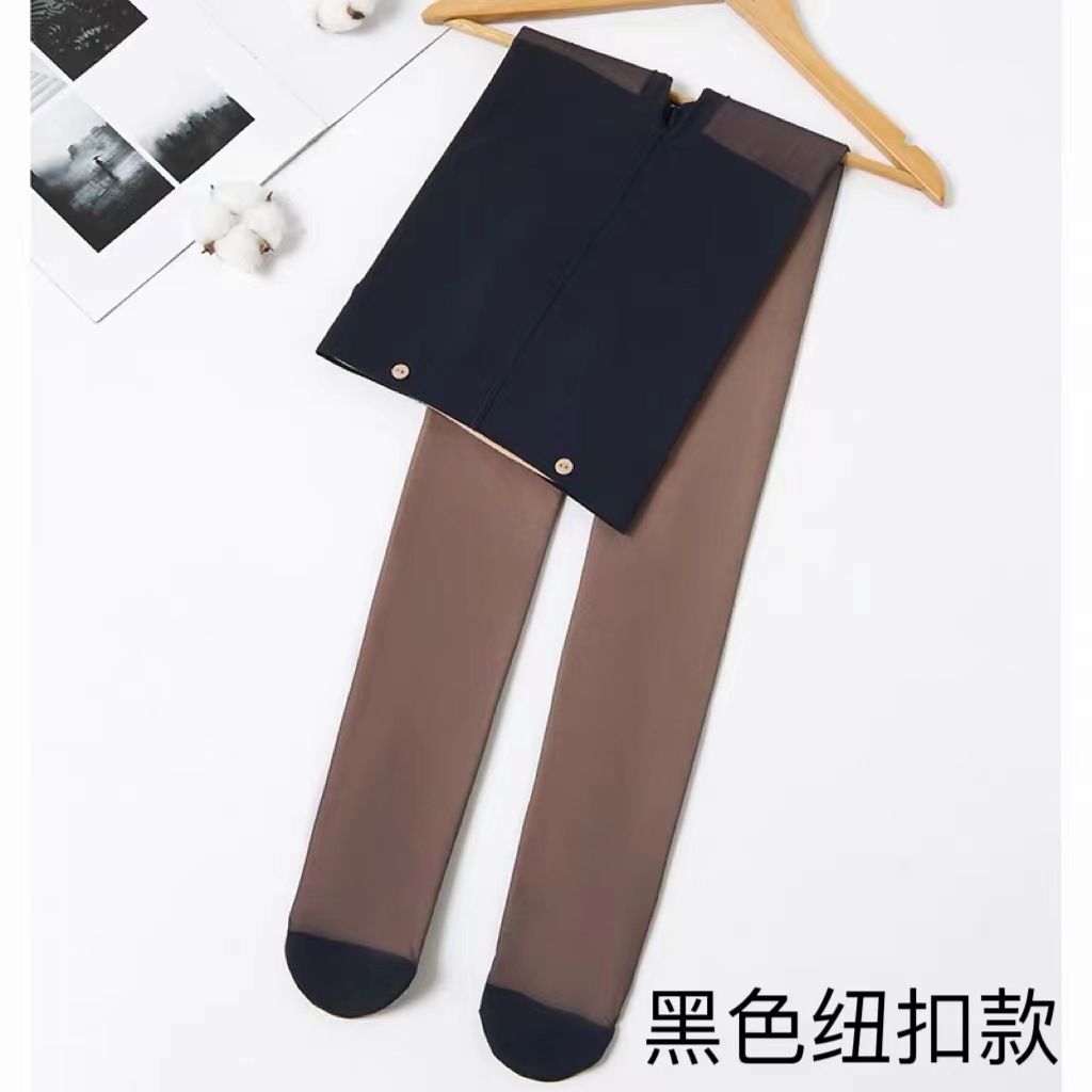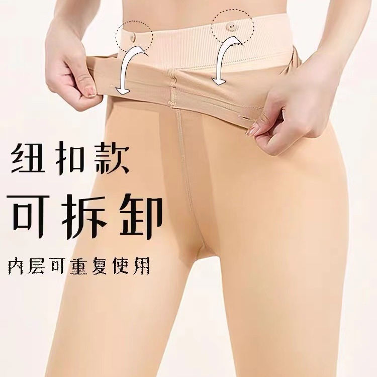 이중 레이어드 가을 겨울용 여성용 누드톤 기모 스타킹, 버튼형, 누드 느낌, 두꺼운 기모, 힙업 효과