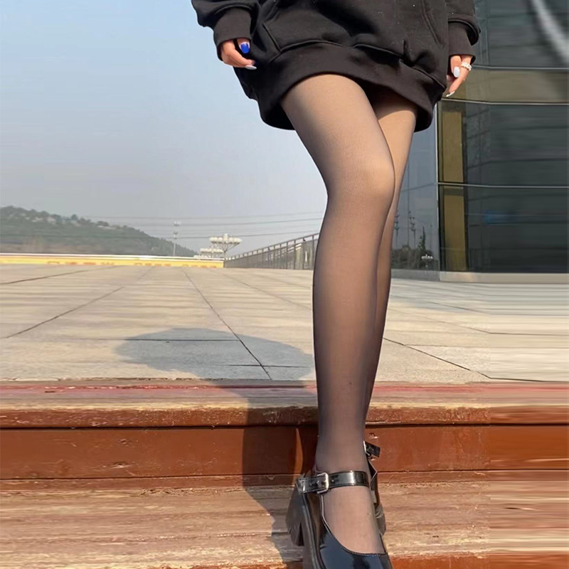 이중 레이어드 가을 겨울용 여성용 누드톤 기모 스타킹, 버튼형, 누드 느낌, 두꺼운 기모, 힙업 효과스토어 가기