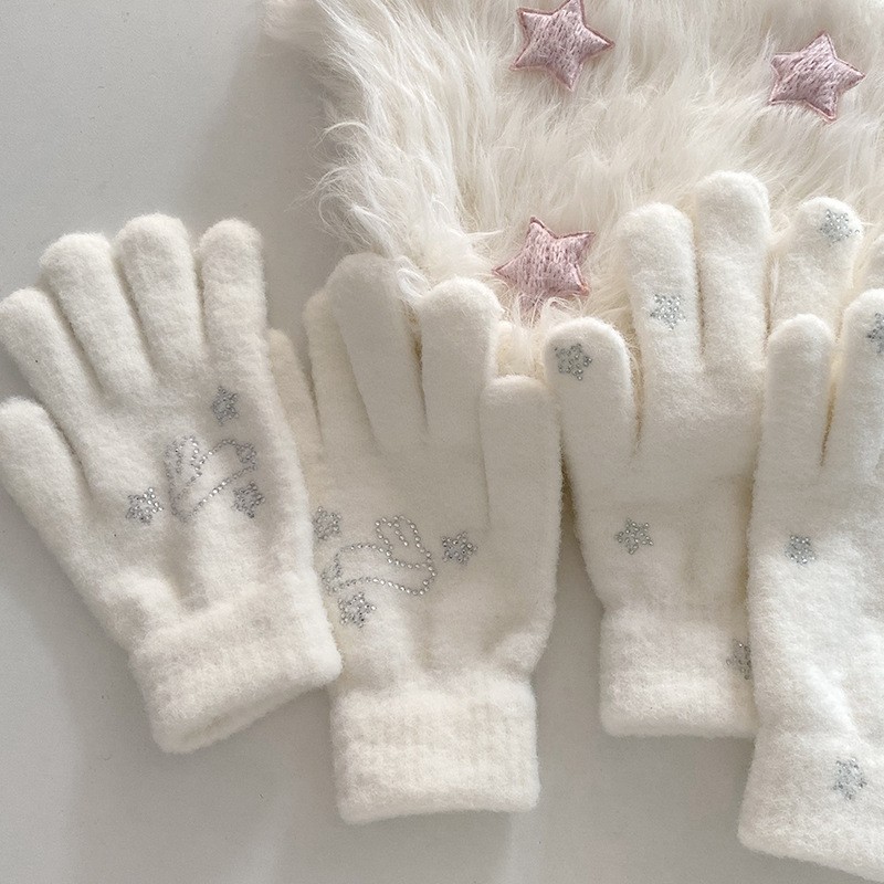 라인스톤 토끼 장갑 캐시미어 따뜻하고 편안한 겨울 싱글 화이트 달콤한 소녀 조커스토어 가기
