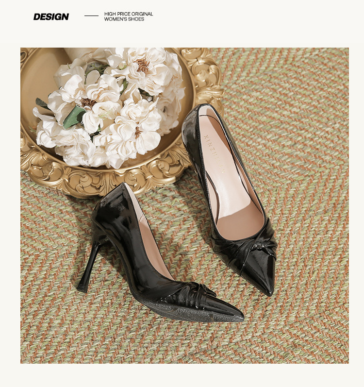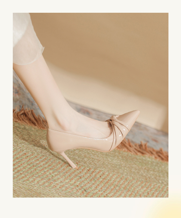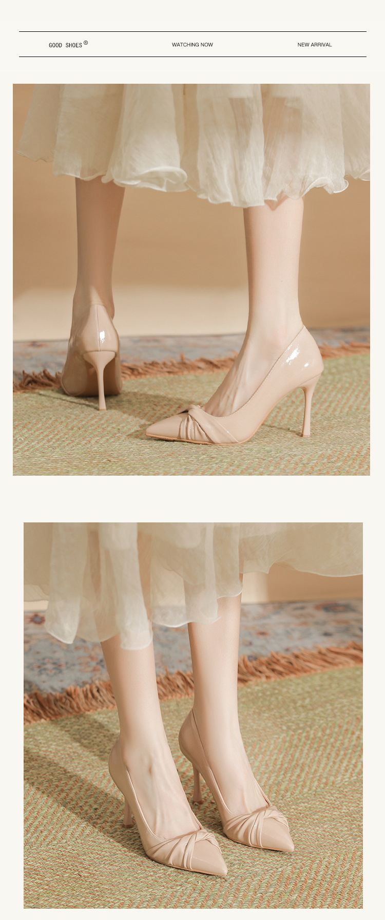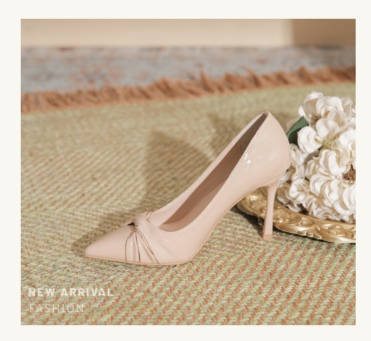 부드러운 가죽 수제 꼬인 뾰족한 하이힐 여성의 2024 가을 새로운 간단한 올 매치 스틸레토 힐 신발 여성용 뉴스토어 가기