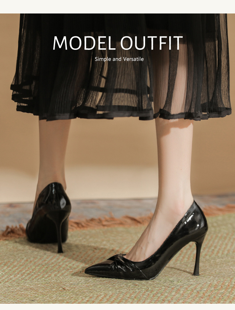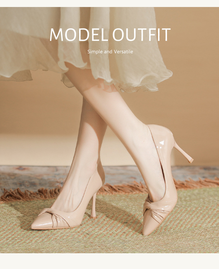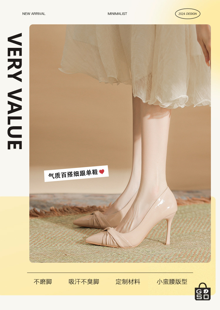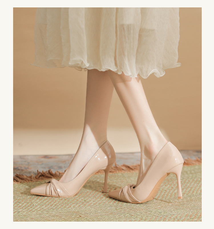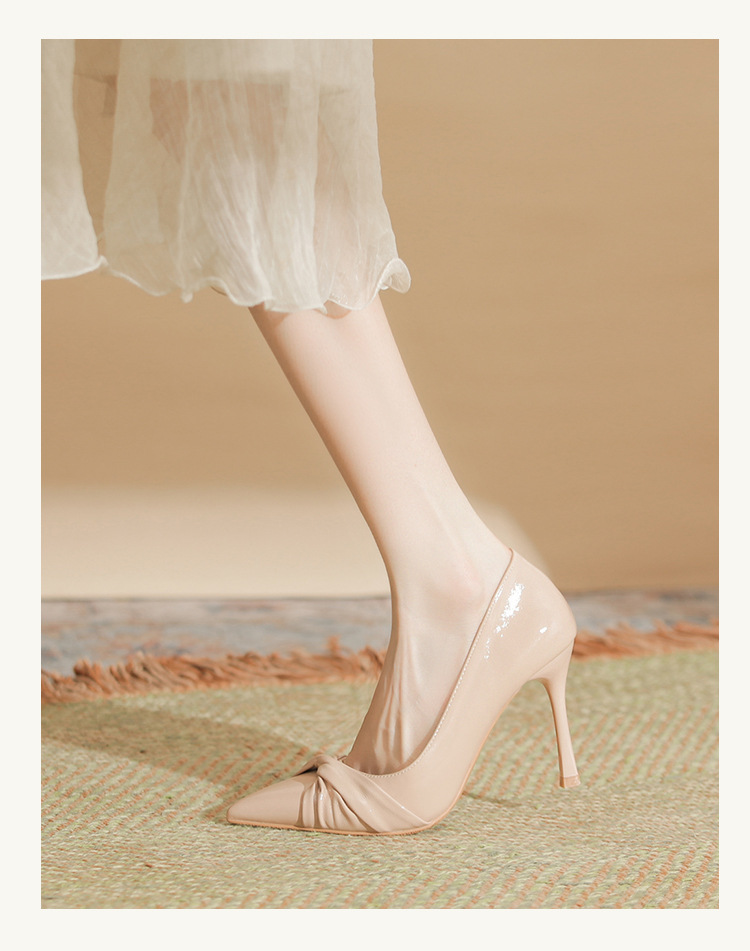 부드러운 가죽 수제 꼬인 뾰족한 하이힐 여성의 2024 가을 새로운 간단한 올 매치 스틸레토 힐 신발 여성용 뉴스토어 가기