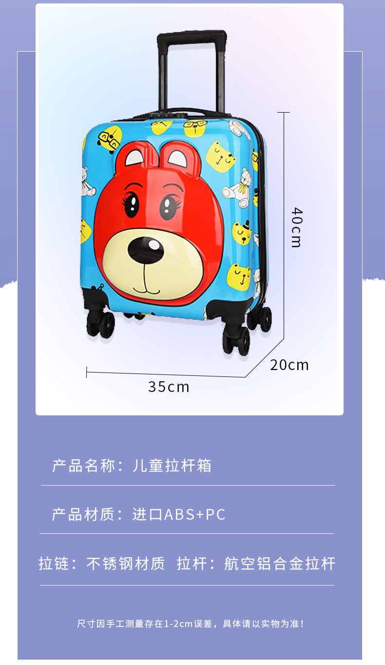 어린이 수하물 케이스 18 인치 귀여운 만화 수하물 로고 유니버설 휠 선물 가방 비밀번호 탑승 상자스토어 가기