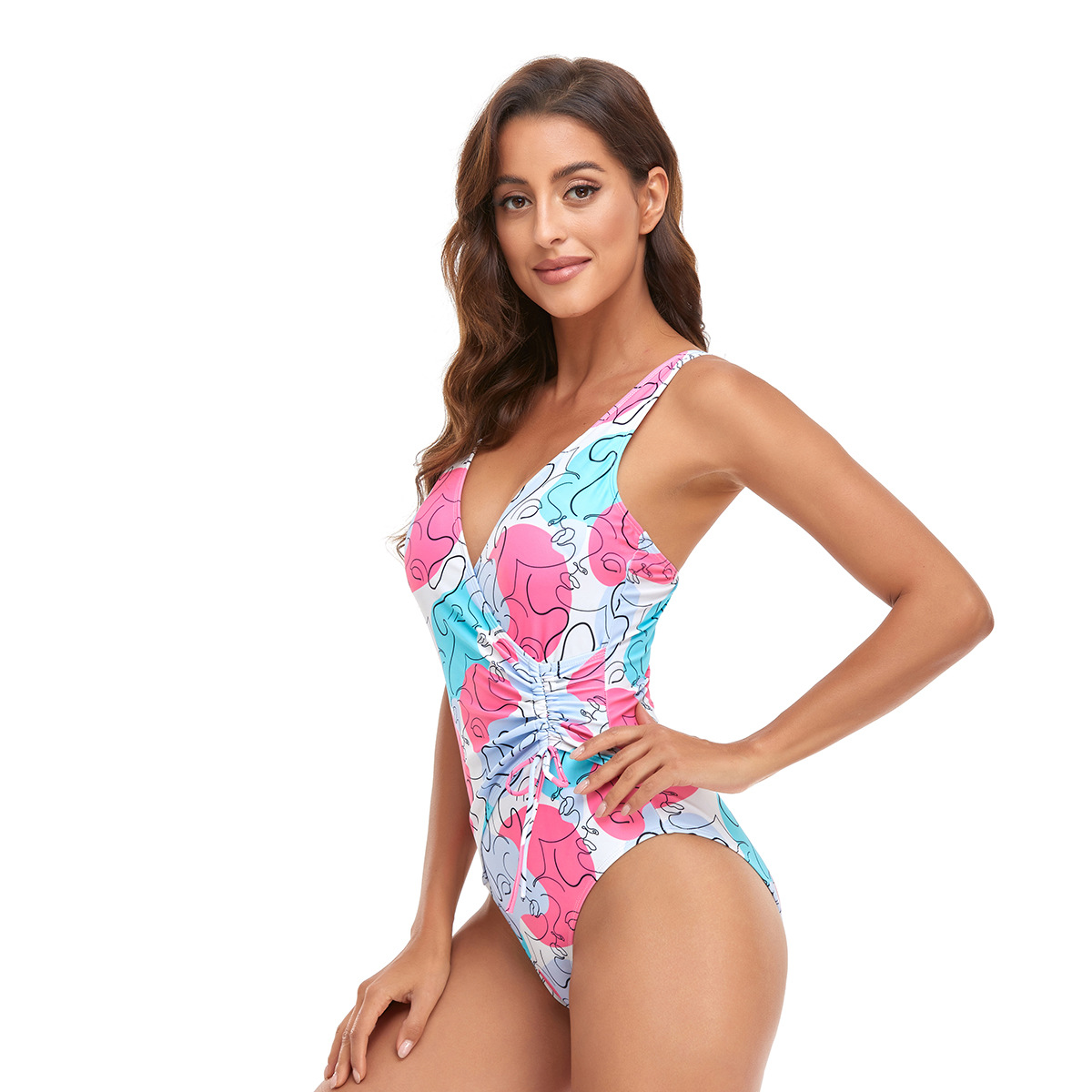 [유럽과 미국의 원피스 수영복] 단색 조절 가능한 어깨 끈 멀티 컬러 인쇄 보수적 인 새로운 국경 대외 무역 수영복 도매