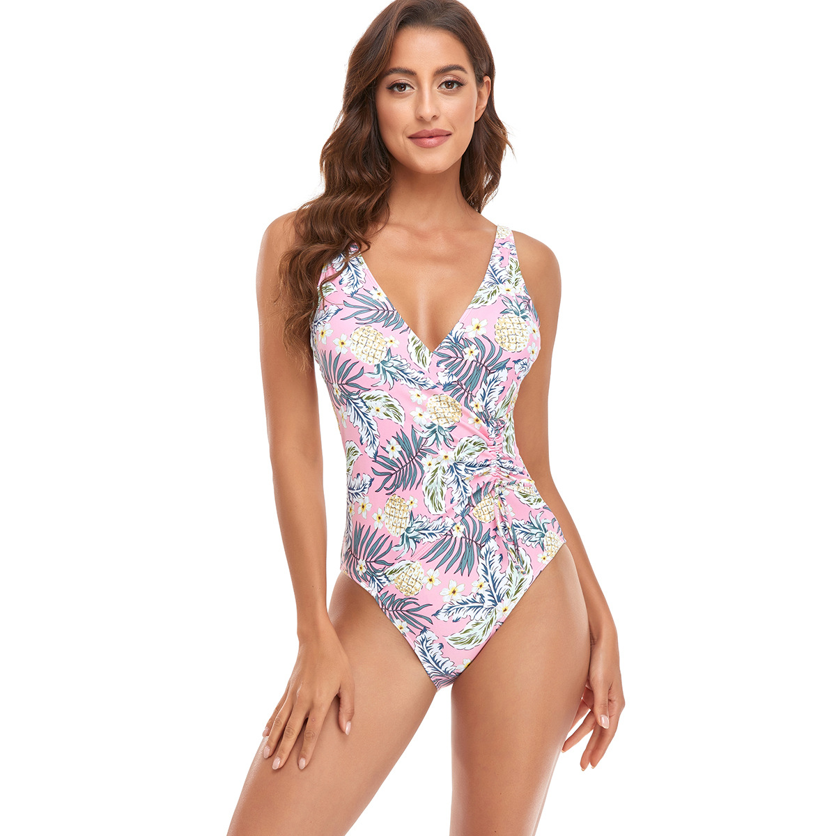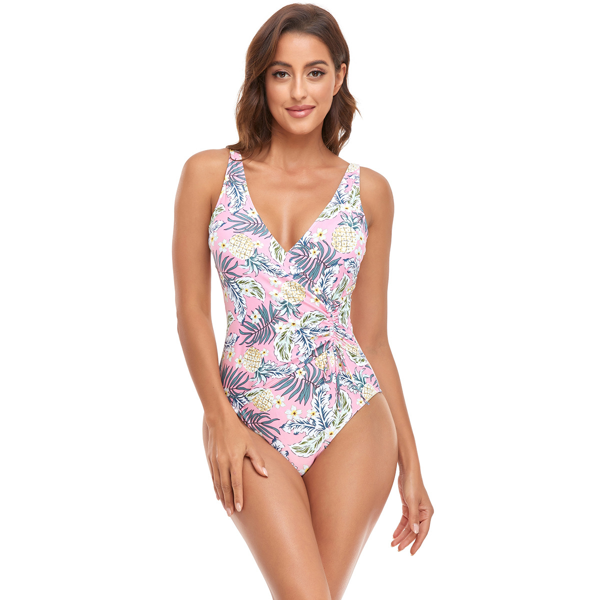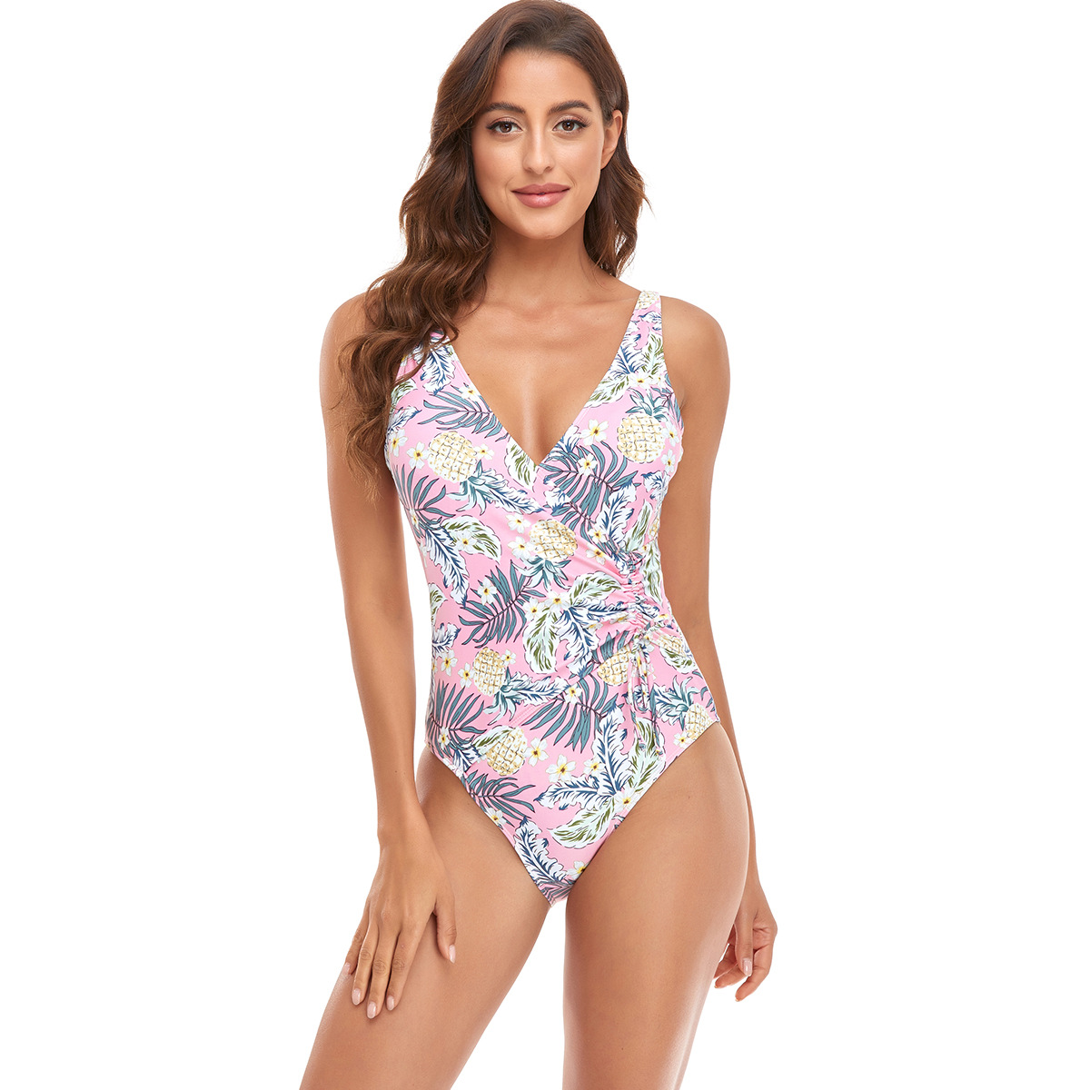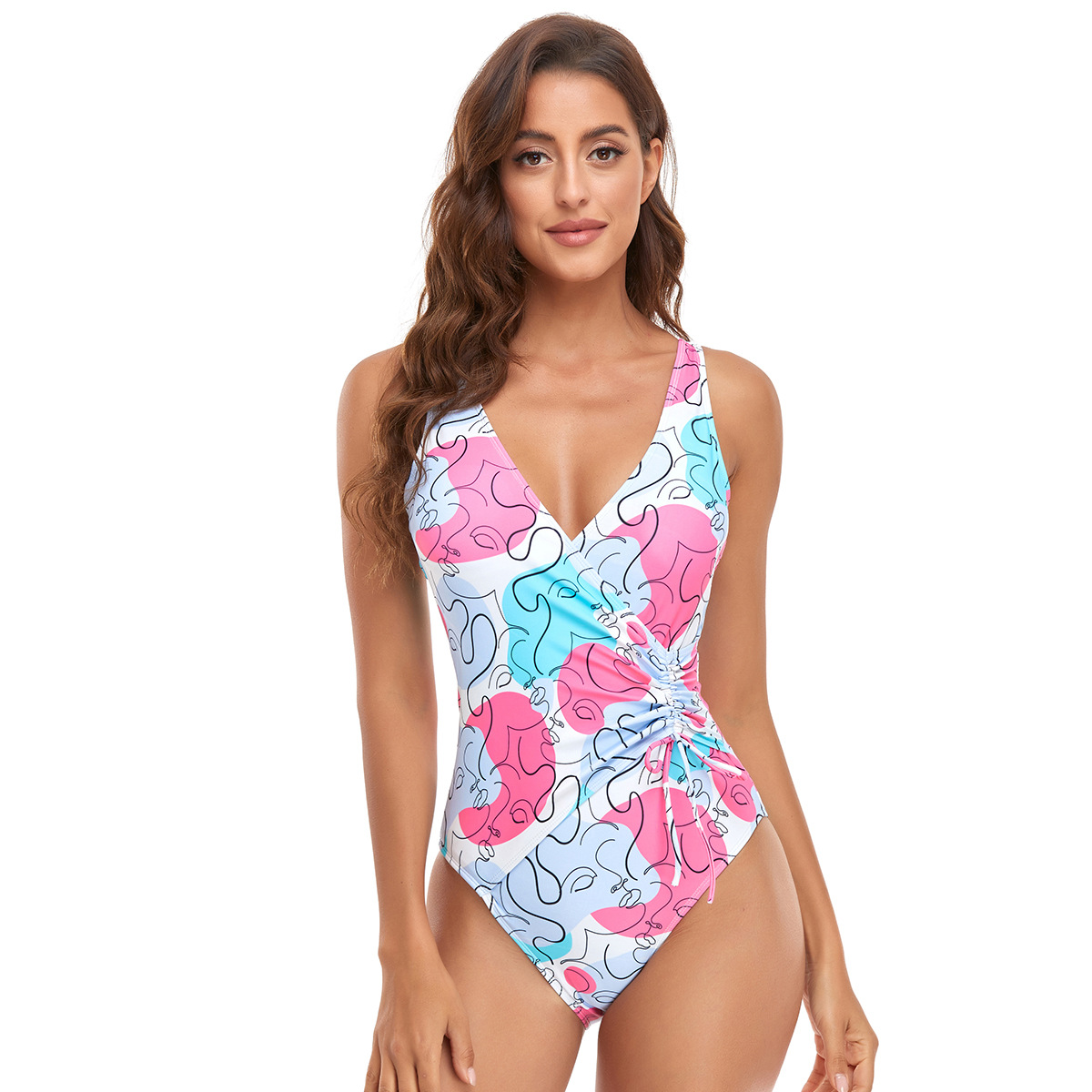 [유럽과 미국의 원피스 수영복] 단색 조절 가능한 어깨 끈 멀티 컬러 인쇄 보수적 인 새로운 국경 대외 무역 수영복 도매스토어 가기