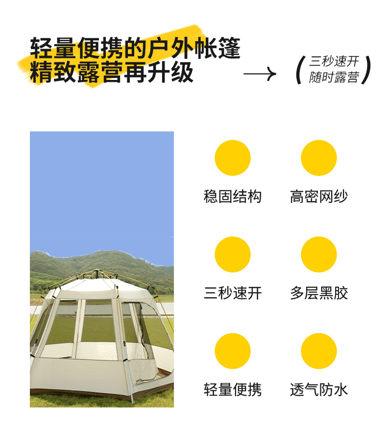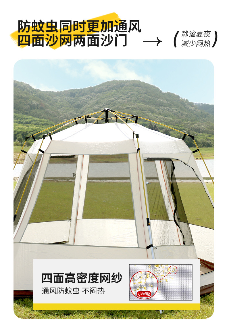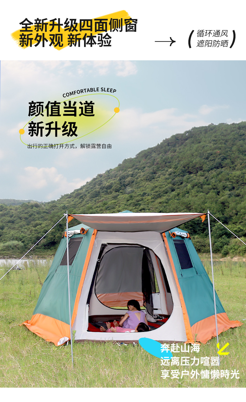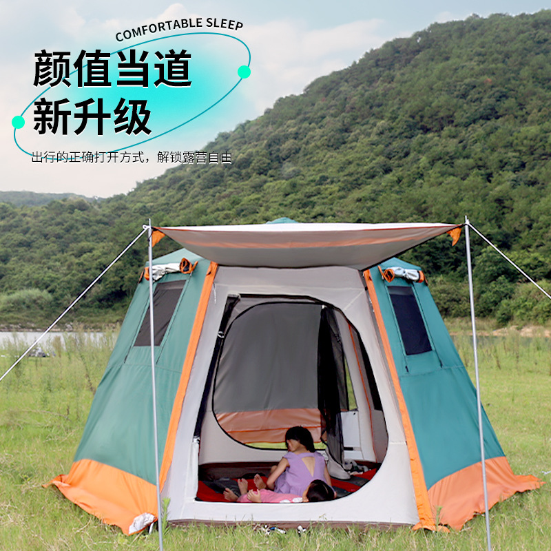 야외 캠핑 텐트 자동 유압 3-4 명 자외선 차단제 및 방비 이중층 모든 포함 육각형 텐트 공장 직접 판매스토어 가기